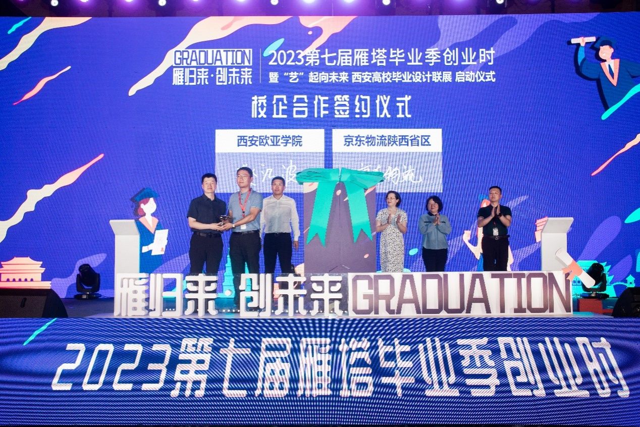 西安市雁塔区科教资源深厚,为加快实施创新驱动发展战略,深化区域产学研协同创新工作,启动仪式现场,西安市雁塔区人民政府与西安美术学院、西安欧亚学院进行政校签约仪式,西安欧亚学院与京东物流陕西分公司进行校企签约仪式,充分发挥校地优势资源,达成政校企深度合作,大力推动协同育人、产学研合作,加快形成校地融合发展新格局。