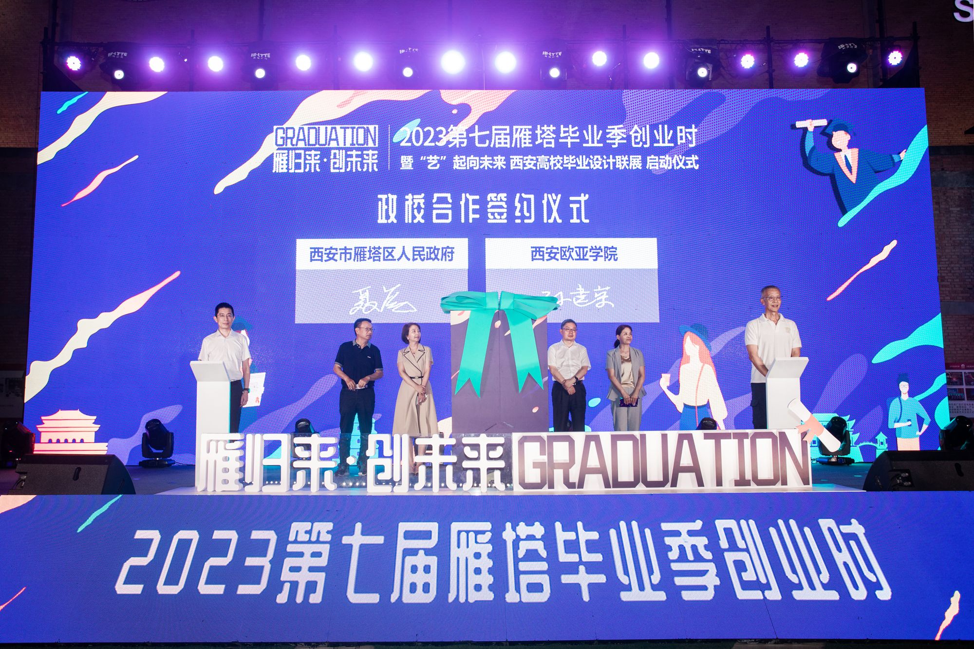 作为此次启动仪式的重要组成单元之一,“艺”起向未来•西安高校毕业设计联展在众多政府领导、企业嘉宾、高校教师和社会大众的共同见证下精彩开幕。同步,西安欧亚学院还与西安市雁塔区人民政府、京东物流陕西分公司分别达成校政、校企合作。以联展为载体,既助力我校开放办学道路向新发展,亦在新生代设计力量中为西安建设成为“设计之都”作出贡献,“艺”起向未来!