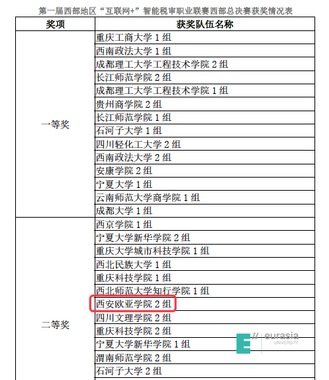(图四)第一届西部地区“互联网+”智能税审联赛决赛获奖情况表
