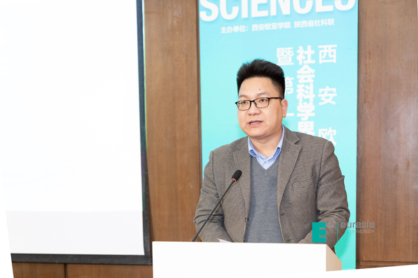 曹明明教授做我校社会科学界联合会筹备工作报告,向与会代表详细介绍了我校成立社会科学联合会的背景、基础条件以及筹备工作进程及安排。