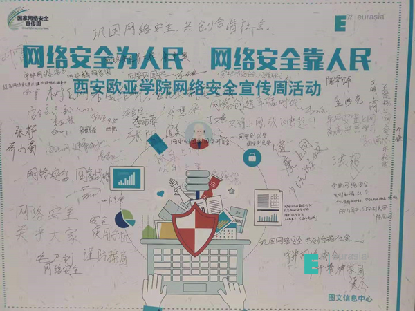 今年是我校图文信息中心连续三年在举办“国家网络安全宣传周”校园日活动。活动现场图书馆学生自治管理委员会学生发起了“网络安全、从我做起”的倡议并在签名墙签名,树立了维护网络安全的决心,积极倡导广大青年学子合理用网、文明上网,自觉增强网络道德意识,共同营造清朗的校园网络空间。本次活动包括开展了网络安全宣传海报、发放宣传彩页、网络安全知识讲座、网络安全视频播放、网络安全图书专架等,线下利用校园电子屏、新媒体的网络宣传优势作用,设立网络安全宣传专题,推送网络安全公益广告、宣传周新闻信息和网络安全知识,搜集并整理校园网络安全相关案例,开展网络安全宣传教育。结合校园师生防诈骗、防校园贷等工作实际,提高网络安全意识为目的,开展网络安全宣传教育。