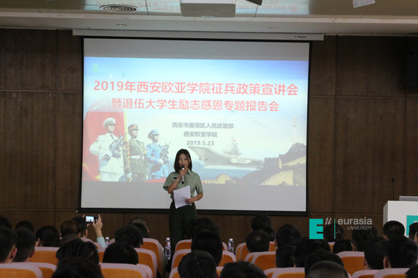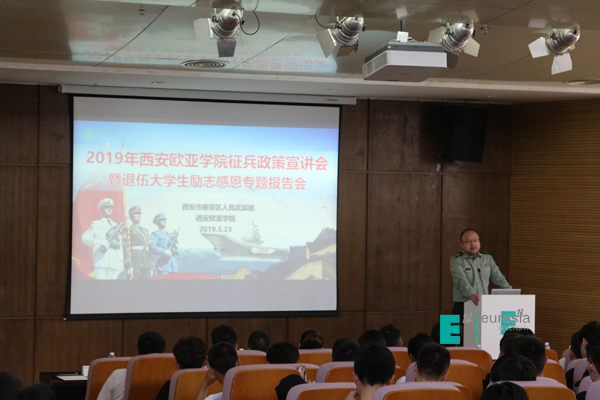 惠风和畅,绿树茵茵。2019年5月23日我校征兵政策宣讲会暨退伍大学生励志感恩报告会在图书馆学术报告厅拉开了帷幕。本次励志感恩报告会是我校“诚信感恩,立德树人”资助月系列活动之一。
