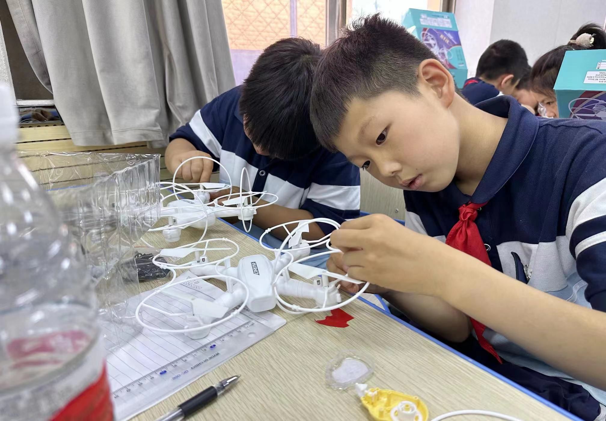 培训围绕无人机结构、飞行器原理及其在人工智能领域的拓展应用,以学生年龄与知识结构储备为出发点,兼顾知识性、趣味性、实践可操作性,通过交互体验、动手实操和