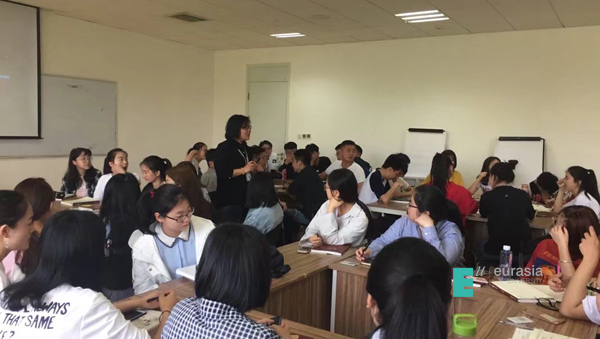 刘瑾校长为同学们带来了一堂题为《大国关系:发展走向与策略应对》的精彩的形势与政策课。刘校长先以近年来到海外考察学习的亲身经历的轶事趣闻导入,引起了同学们的浓厚兴趣。接下来,从世界主要力量的演变、单边主义的蔓延、现存体系遭受冲击方面深入地分析了当前波谲云诡的国际形势,并进一步阐述了十九大以来我国外交的六大关键词:开放、合作、稳进、引领、担当、坚守。 最后刘校长将我国当前最重要的外交公共产品“一带一路”与欧亚学院的发展结合在一起进行了深入浅出的分析,也对同学们的发展提出了殷切的希望。同学们对刘校长捭阖而又主题明确,大气而又贴近生活,深刻而又诙谐幽默的形策课报以热烈的掌声。