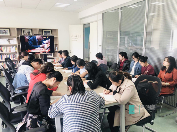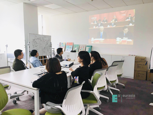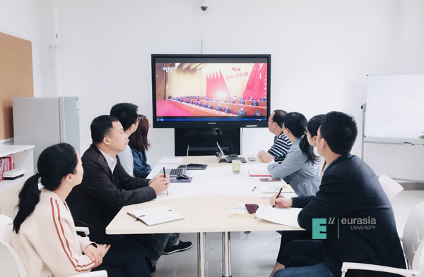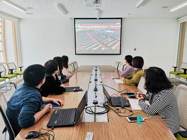 (图一)我校党委理论中心组带头观看大会直播