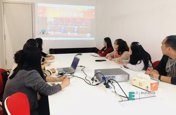 4月30日,习近平总书记出席纪念五四运动100周年大会并发表重要讲话。学校党委组织学校各级党组织观看大会现场直播,认真学习并深刻领会习近平总书记在纪念五四运动100周年大会上发表的重要讲话精神。学校党委在图书馆学院会议室举行党委理论中心组扩大学习,带头全程观看纪念五四运动100周年大会直播。各青年社区分党委组织学生党员在党员活动室、多媒体教室、学生“客厅”等场所收看大会直播。各二级学院党总支、职能处室直属党支部组织教师党员在办公室、会议室等场所收看大会直播。