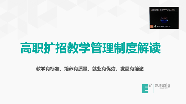 高院长指出,高职扩招百万是党中央、国务院作出的重大决策部署,是职业教育改革发展的重大机遇。高职学院积极响应国家号召,严格执行国家政策和省教育厅的文件精神,按照“标准不降、模式多元、学制灵活"的原则,创新教学组织形式、教学模式,实施分类教学,将质量型扩招的要求落到实处。他希望重新回归校园的同学们尽快完成身份转变,规划好个人学业和职场发展,在欧亚遇见教育的美好,遇见更好的自己。