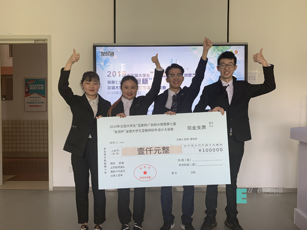 由刘欣、江渭老师指导,电商17级学生开发的解决农民增产不增收问题的云农APP设计和由李冰洁、江渭老师指导,中英国际班学生运用VR技术开发的帮助人们解决看房和装修一站式解决方案的V触APP获本次竞赛一等奖,两个团队各获得1万元现金奖励,同时云农APP项目作为大赛前六名参加了国赛终极PK。由李冰洁老师指导,中英国际班学生开发的学习音乐的项目音乐之声获得本次比赛二等奖,团队获得3000元现金奖励。由李静、江渭老师指导,电商18级学生开发的帮助青少年戒除网瘾的i自律APP设计获得本次比赛三等奖,团队获得现金奖励1000元。以上获奖团队学生还分别获得最高年薪20万元不等的职场入场券。