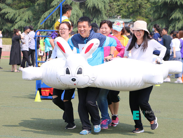 近年来,我校工会不断创新运动会项目,希望能扩大教职工的参与面,让更多的老师都能体会到健康运动的快乐,旨在倡导用健康的体魄和充沛的精力去享受工作和生活的乐趣。今年的项目有健步走、亲子项目和龟兔赛跑等单项,尽量给教职工提供喜闻乐见的运动项目,让大家快乐运动,健康生活,做快乐欧亚人。