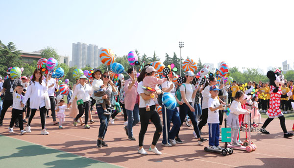 今年教职工运动会首次引入亲子趣味项目,共同关注“欧二代”成长, 共有54组家庭参与。本次的踏石过河活动,让家长和孩子一起合作,小朋友们作为活动主力,协助父母快速跑到终点。在活动中,小朋友们在一起交流活动。家长与孩子之间充分互动,不同家庭小朋友间愉快交流,孩子们也体会到了帮助父母的小小成就感,一张张灿烂的笑脸,让我们我们到了"欧二代"的勃勃生机。