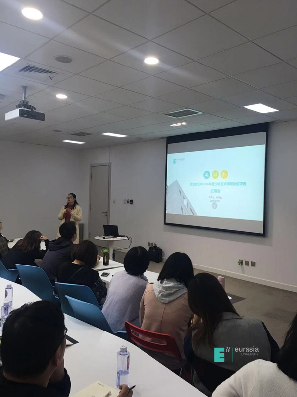最后,张娜副处长进行了总结讲话。她提到,学校的课程建设任重而道远,教务处和财务处会一如既往的为老师们提供服务与帮助。2018年重点课程建设项目实行项目负责人制,经费实行项目制预算管理模式,就是要极大的激发老师们的活力,给予老师们更多的自主权。希望老师们作为建设的主力军能够充分发挥各自的力量,相信未来会有一大批优秀的课程呈现给我们学生,欧亚未来的教育教学工作也一定会有质的提升与飞跃。
