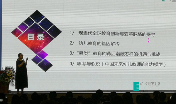 发言中,陈院长首先以“一颗卫星惹的祸”引出了新时代的人才需求,并以密若瓦学院、美国42学校访谈两个案例展示了各层级教育组织的教育创新与探索;从历史与现在两大角度出发说明了中国幼儿教育的基因解构。其次阐明了幼儿园的利益相关者及其诉求分析;“另类”幼儿园,“为什么以儿童为中心如此重要”;“如何评价一个好的幼儿园”等问题,为广大幼教工作者带来了新的启示。陈院长的精彩分享迎来了台下的阵阵掌声,也将本次会议的气氛推向了高潮。
