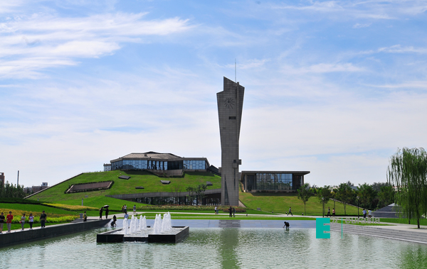 (图一)图书馆山前的钟塔是欧亚的地标建筑