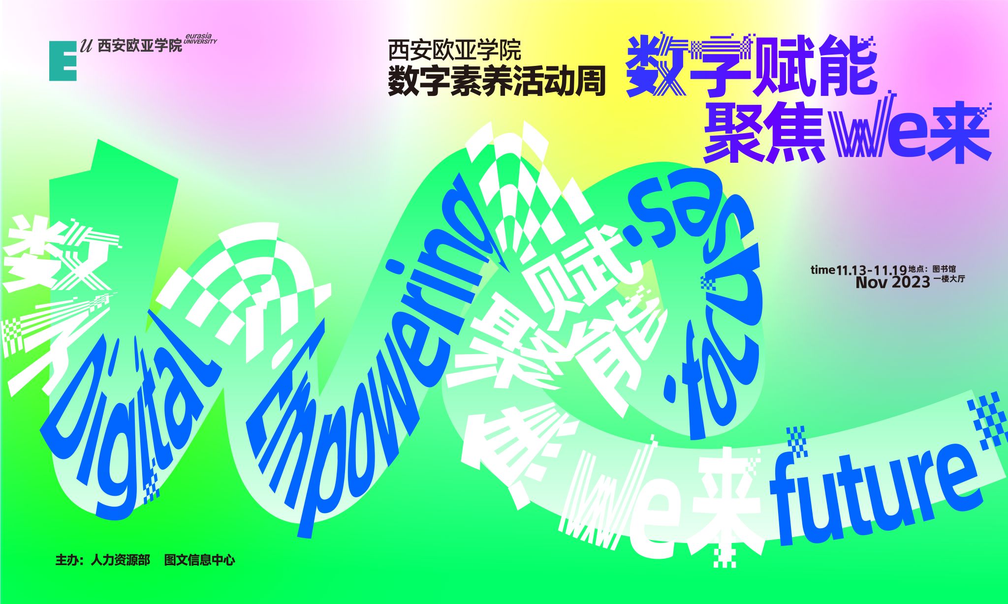 为了进一步提升全校师生的数字素养,在28周年校庆之际,学校人力资源部联合图文信息中心于11月13日至19日开展主题为“数字赋能,聚焦We来”的西安欧亚学院数字素养活动周,包括了数字素养专家讲座、沉浸式体验活动、在线知识课堂和实地参观等多种形式,希望通过此次活动,广大师生能够了解教育数字化转型的发展,特别是人工智能等技术发展带来的教学变革,从而提升教师在教学设计创新能力,提升同学们的学习体验。