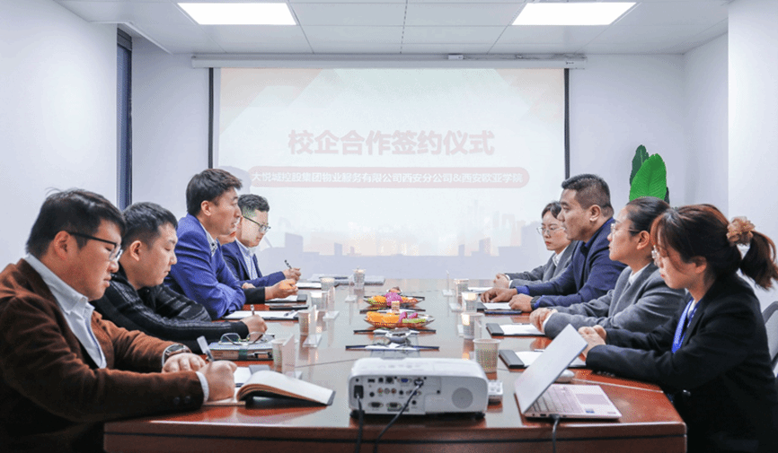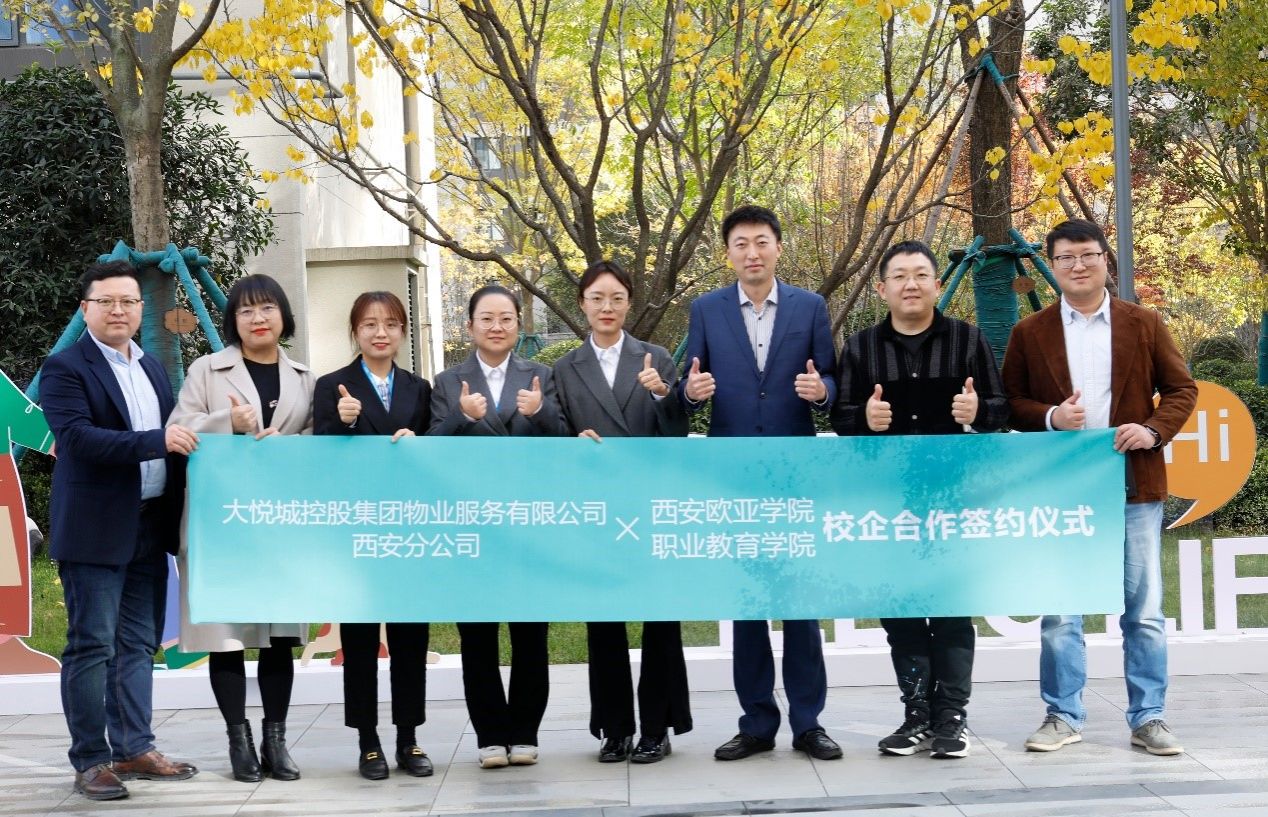 中国红色物业服务优秀企业、中国物业服务百强企业—大悦城控股集团物业服务有限公司西安分公司与西安欧亚学院职业教育学院签署校企合作协议。