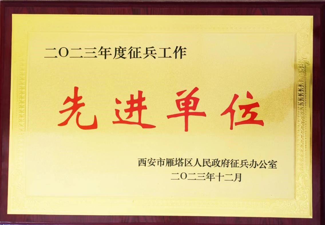 (图二)我校荣获雁塔区2023年度“征兵工作先进单位”奖牌