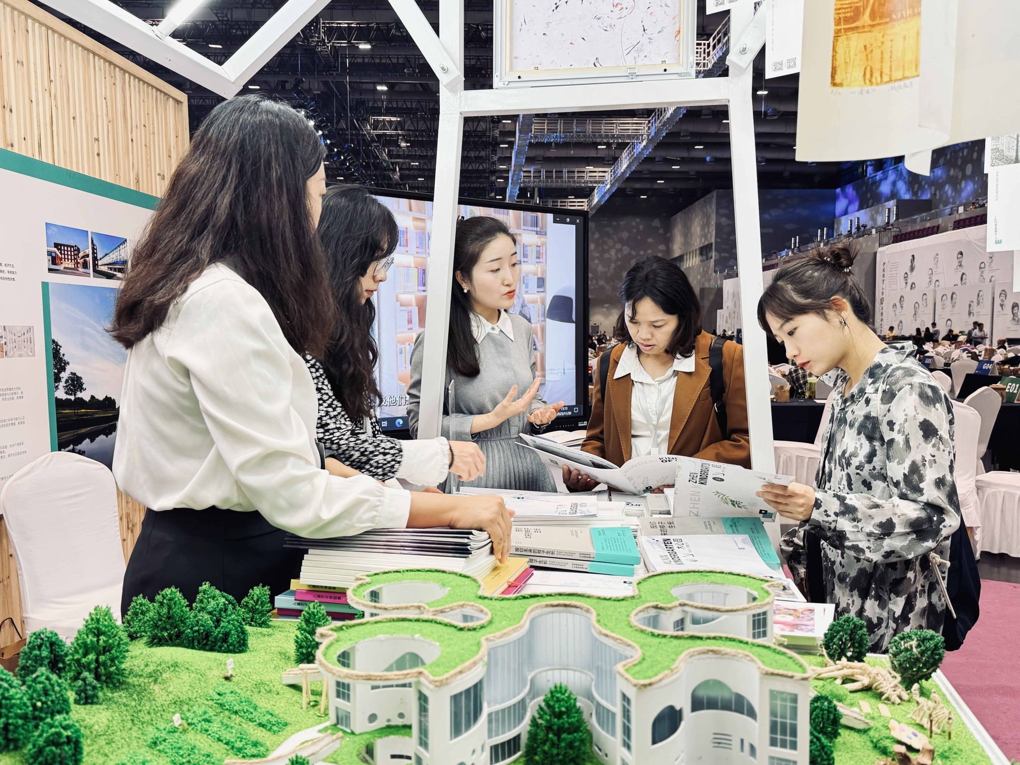 来自浙江教育局的参会老师则在摊位前详细了解了学院的人才培养理念,他认为五力模型的提出非常前沿,“未来教师的培养理念具有重要的启发作用,也对我们引进教师人才的实践给出了参考。”
