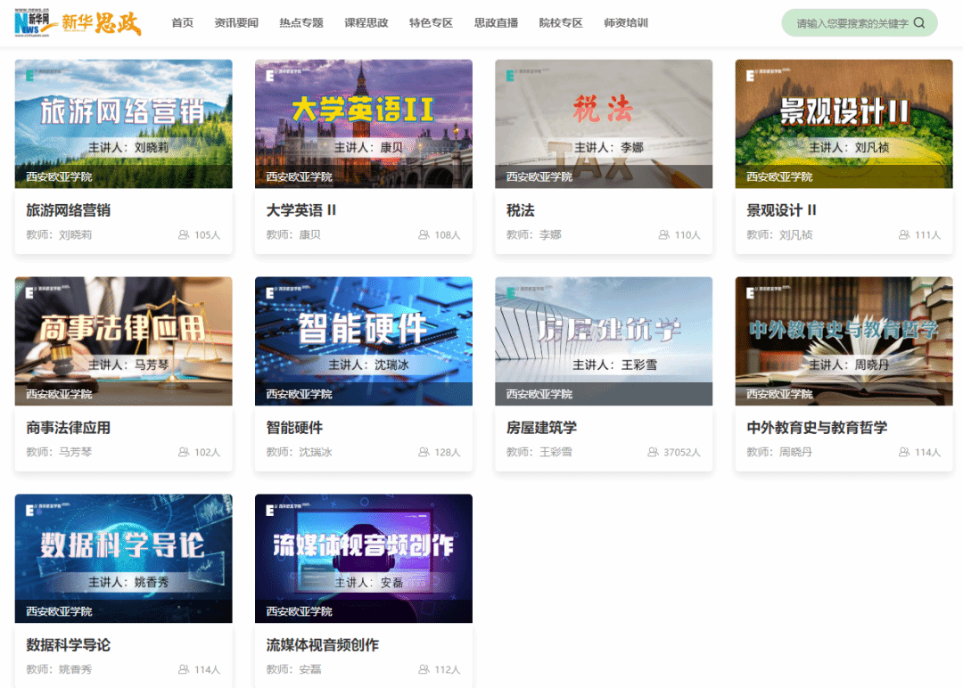 2023年,学校着力推进课程思政教育教学改革,深入挖掘课程思政教育元素和功能,积极探索将育人内容与专业知识技能教育内容有机融合,培养学生提升社会责任感与担当意识。信息工程学院沈瑞冰老师负责的《智能硬件》课程及其团队被认定为第二批陕西省课程思政示范课程和教学团队。《智能硬件》《房屋建筑学》《中外教育史与教育哲学》《旅游网络营销》等10门课程在新华网“新华思政”平台上线,面向全社会开放共享教学设计、教学视频、教学课件、说课视频等教学资源。