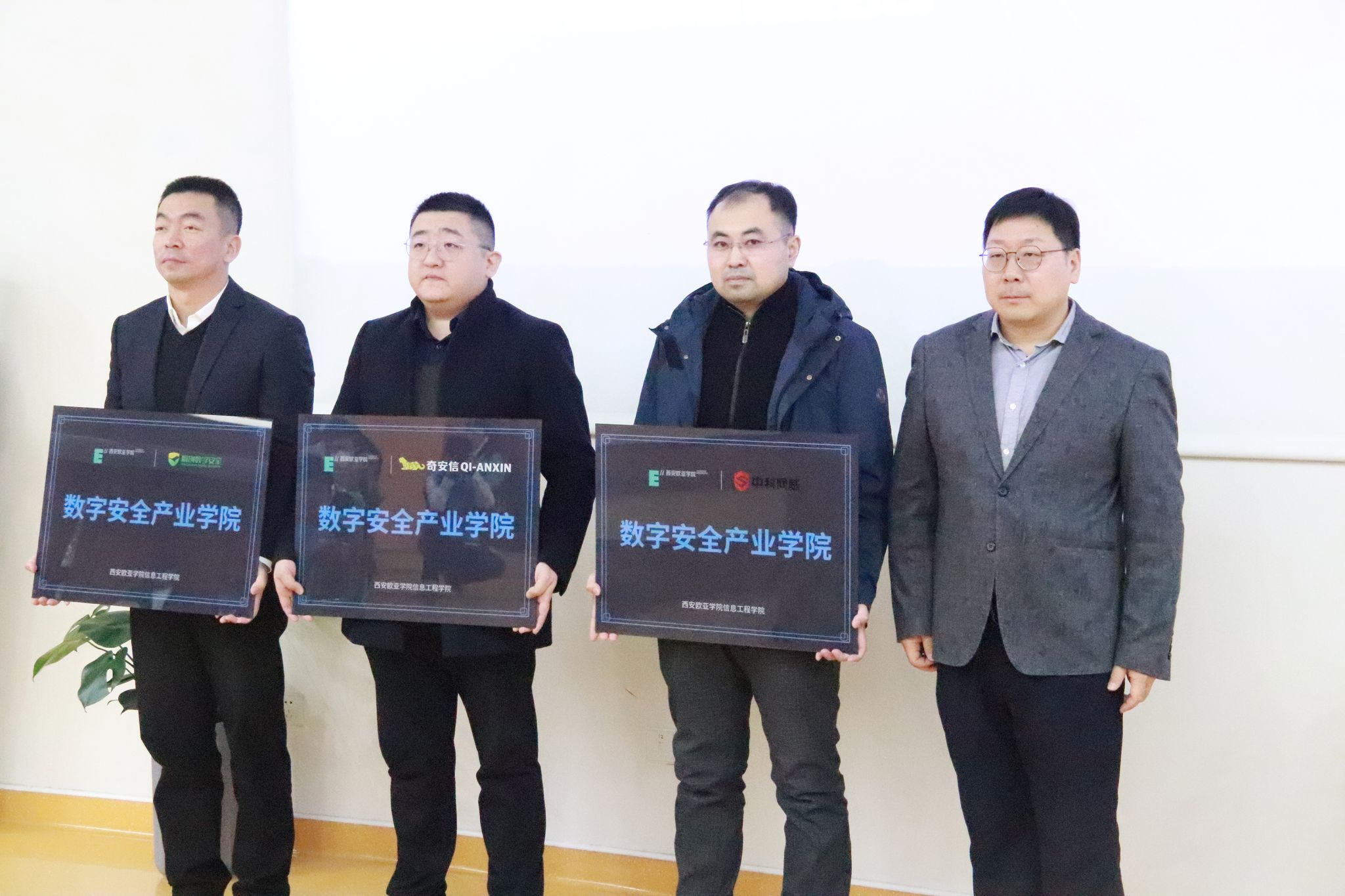12月13日,信息工程学院与奇安信科技集团股份有限公司、北京中科网威信息技术有限公司等行业头部企业联合成立的数字安全产业学院正式揭牌。学院以服务地方产业发展为根本,立足网络安全应用研究,面向大型企业数字化安全需求,构建从网络底层到顶层应用的网络和系统安全、代码和信息安全、物联网安全全覆盖的安全防护体系,培养具有国际视野、创新意识的高层次应用型网络安全人才。