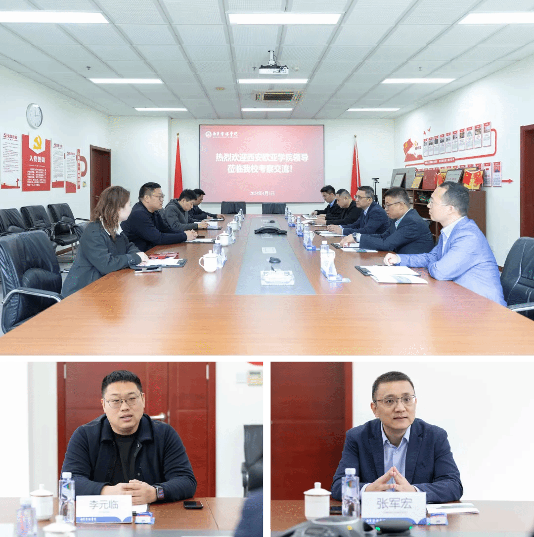2024年4月3日上午,中国教育后勤协会民办院校后勤分会副理事长、西安欧亚学院校党委副书记张军宏,中国教育后勤协会民办院校后勤分会秘书长、西安欧亚学院后勤集团总经理任龙刚,视界教育总经理王诗经、中国教育后勤协会民办院校后勤分会秘书处孙俊超、田鑫博一行五人前往南京传媒学院进行参访交流,双方充分交流了高校后勤管理与服务的经验,并在南京传媒学院园区内进行了参观学习。