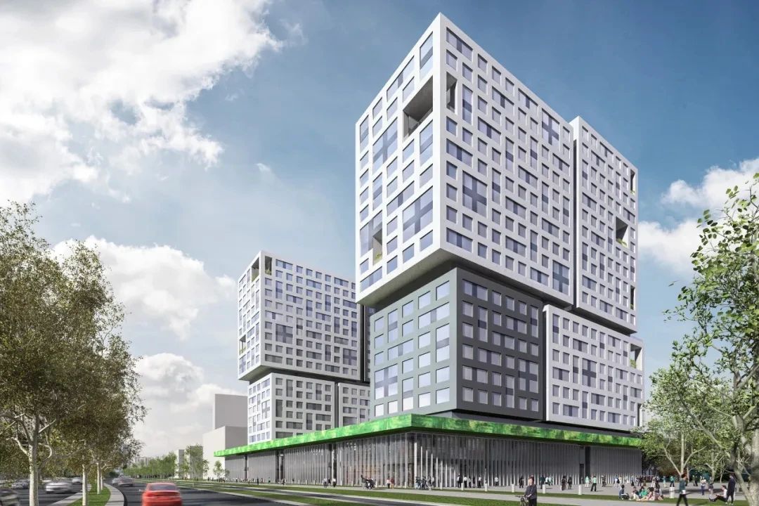 它们如积木般搭建组合为两座20层的公寓塔楼