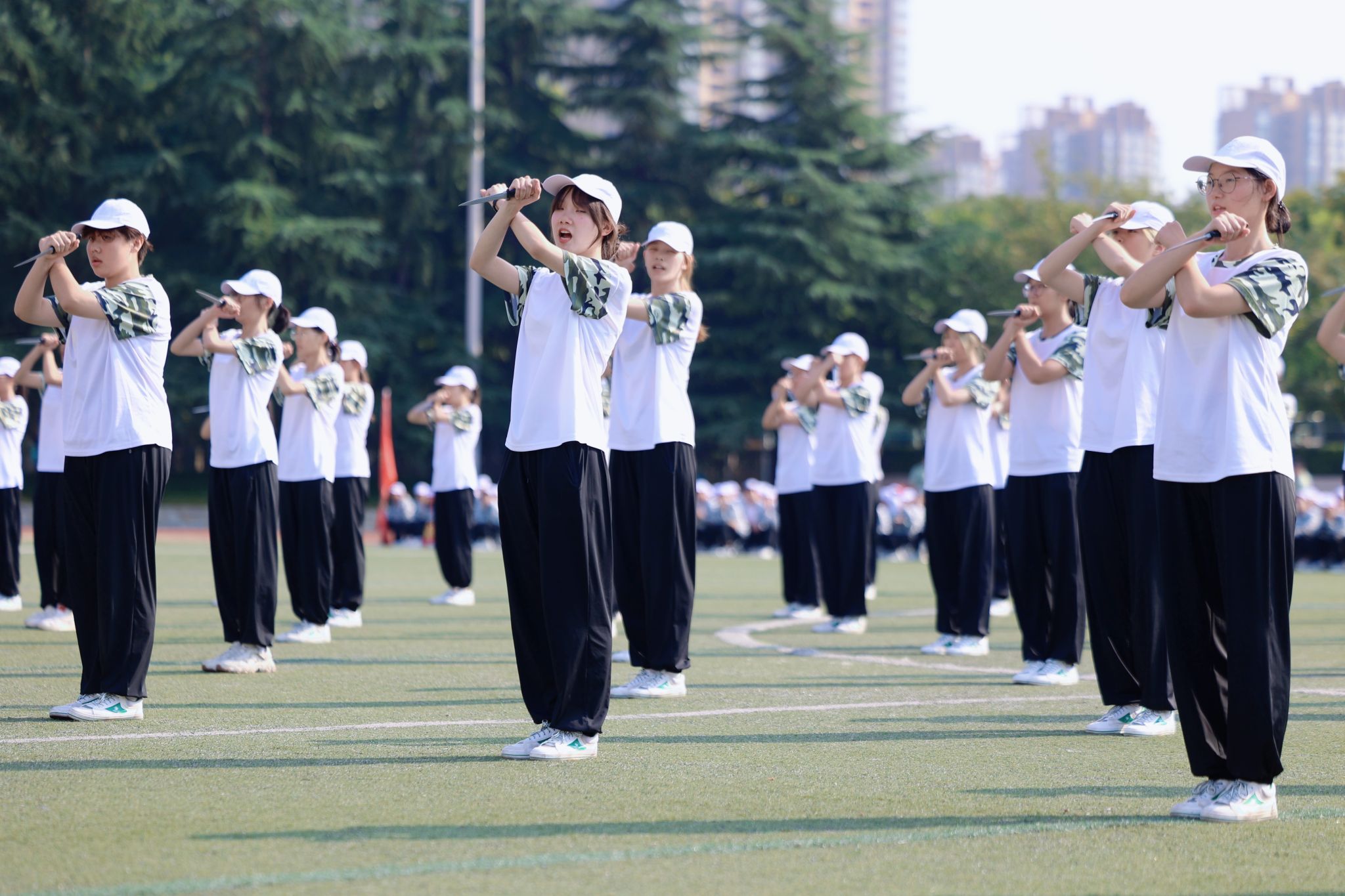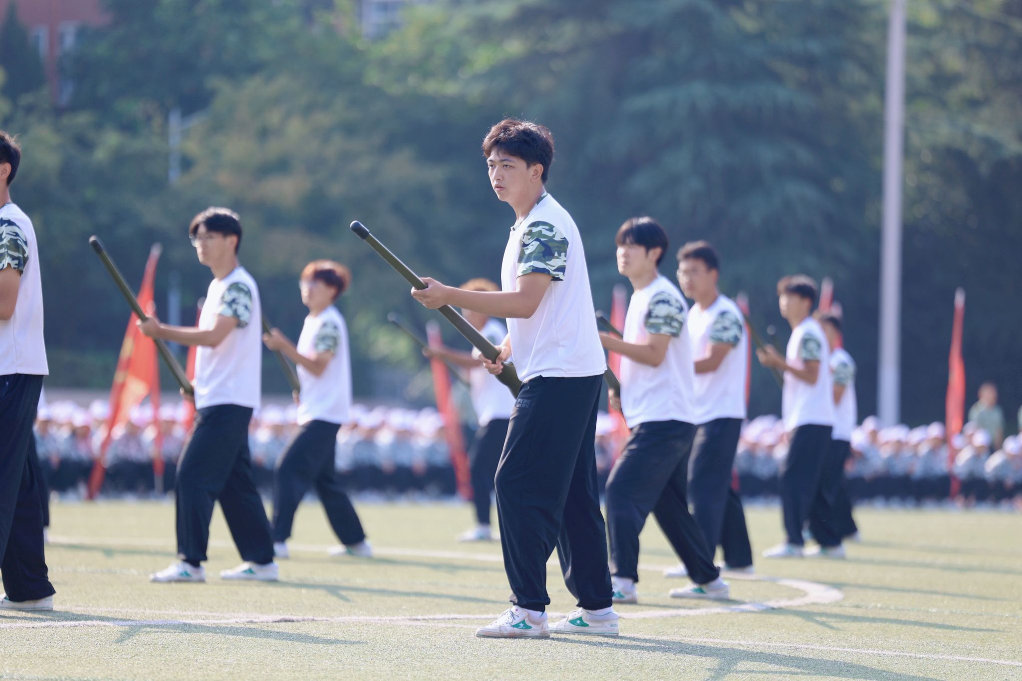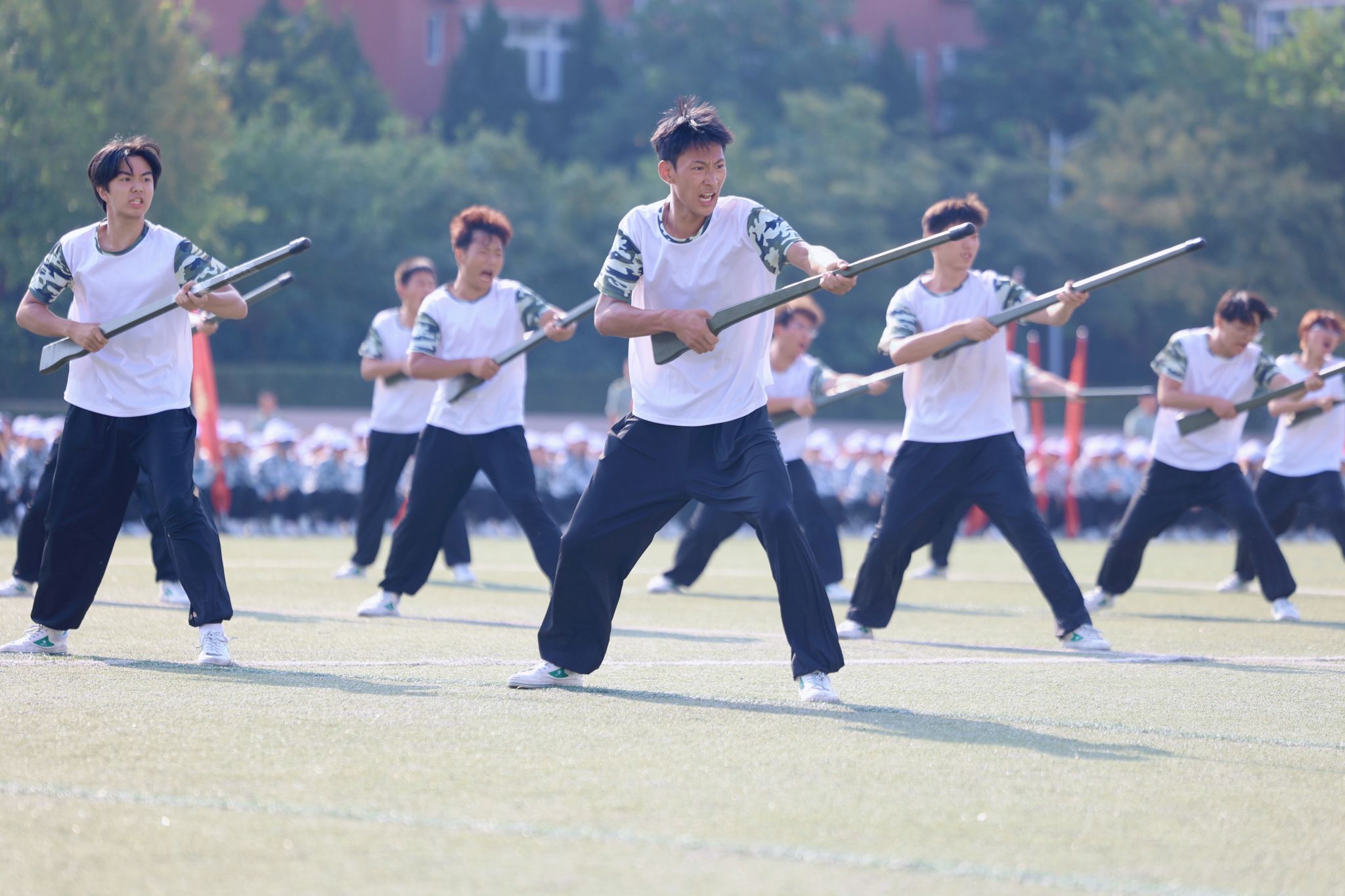 在方阵队列和格斗表演中,同学们动作全神贯注,口号强劲有力。他们专注的姿态,如同雕塑般坚定,嘹亮的口号,如同雷霆般震撼,散发着蓬勃的朝气与活力,让人感受到了青春的力量。