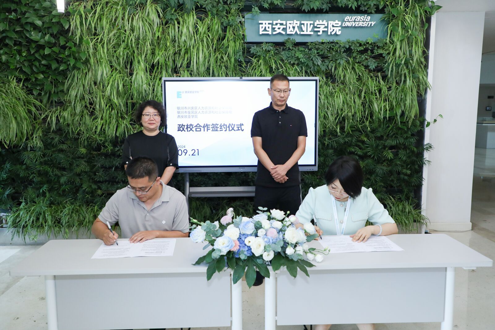 随后,银川市兴庆区、金凤区人力资源与社会保障局分别与西安欧亚学院签订政校合作框架协议。