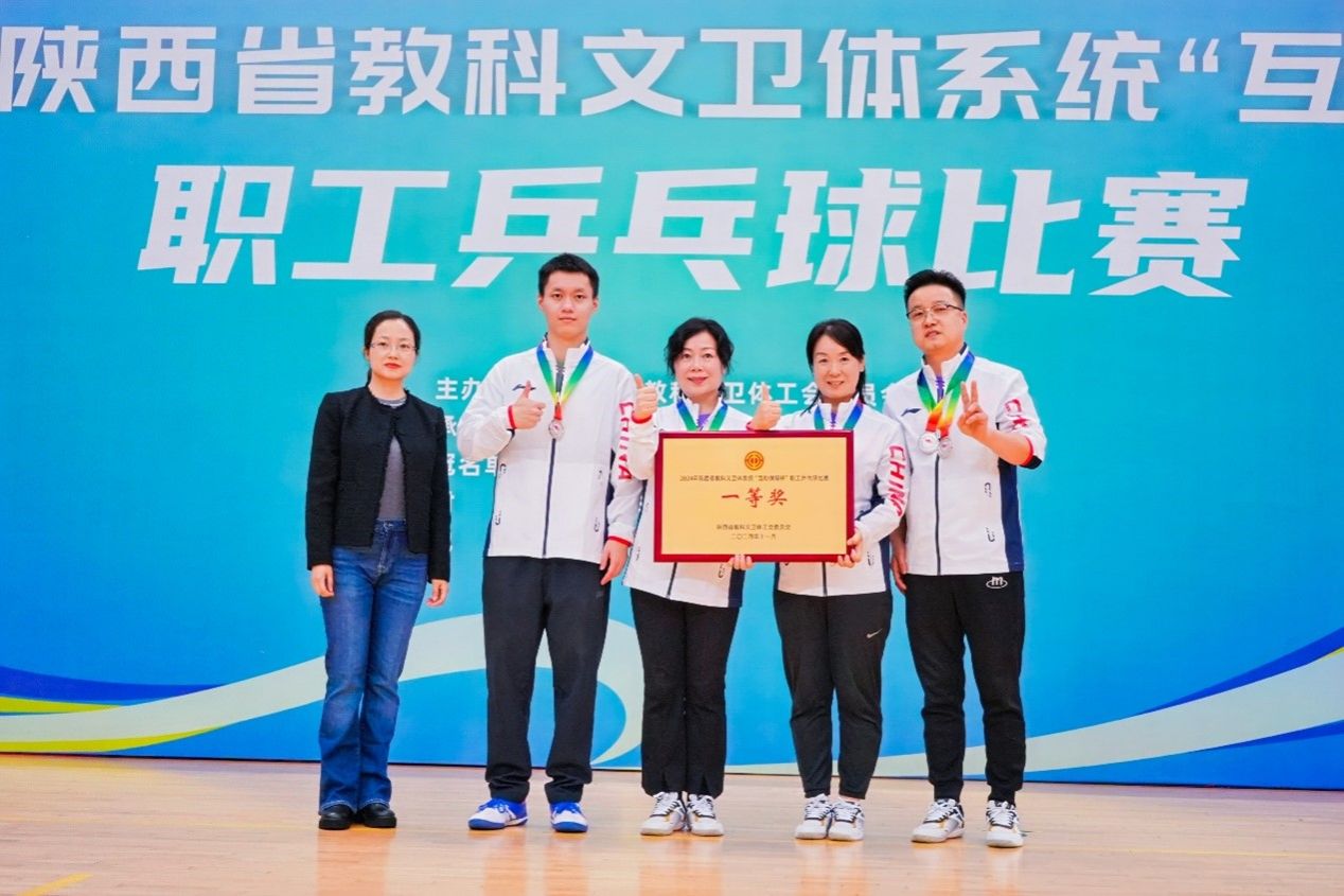 11月初,陕西省教科文卫体工会举办的 “中国梦 劳动美 新征程 建新功”2024 年陕西省教科文卫体系统职工乒乓球比赛圆满落下帷幕。我校在此次比赛中表现出色,获得亚军,勇夺团体一等奖,我校教职工强能获得优秀教练员称号、韩亚维、陈建良获得优秀运动员称号,为学校赢得了荣誉。