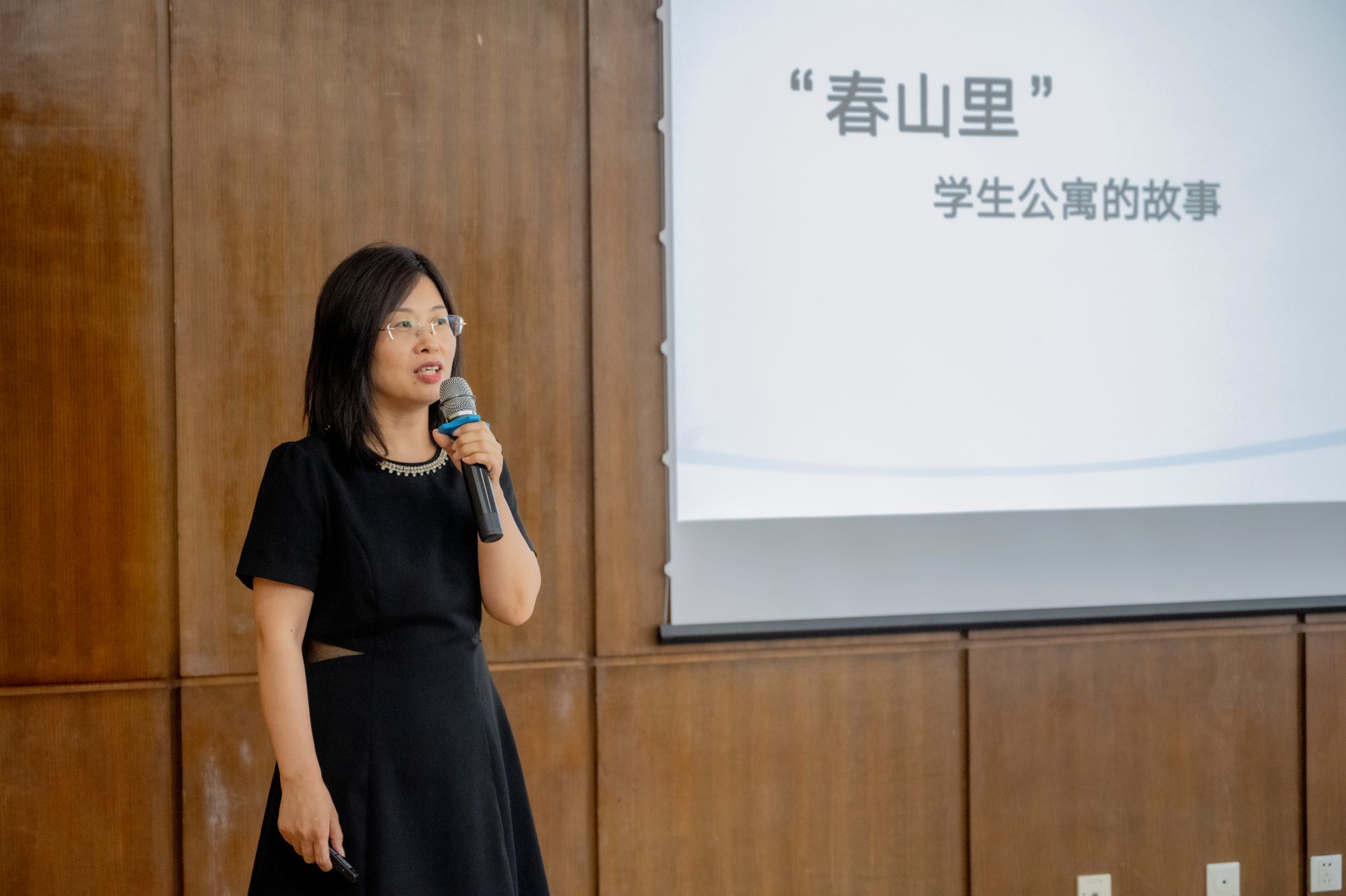 “彼美人兮春山上下,如无徒者山南北”—— 《满江红 (壬子生日)》宋·方岳 。“春山里”不仅是一栋建筑,更成为承载教育理想的容器。 “春上”“山南” 的楼宇细分,延续了金桥、虹桥的建筑命名美学。从社区共享价值观的氛围营造,到开放式的共享空间、智能化的生活设施、充满创意的功能分区的精心规划,更让这场教育空间革新从蓝图变为现实。“我们的目标是为学生创造一个良好的学习场景,让他们能够在这里实现自我价值的提升和生活品质的飞跃。”雷春妮老师娓娓道来,详细介绍了“春山里”学生公寓的项目概况、公共学习空间、公共客厅、智慧楼宇、物业服务、宿舍基础设施、共享服务空间、一层商业配套以及和光文体中心的情况。