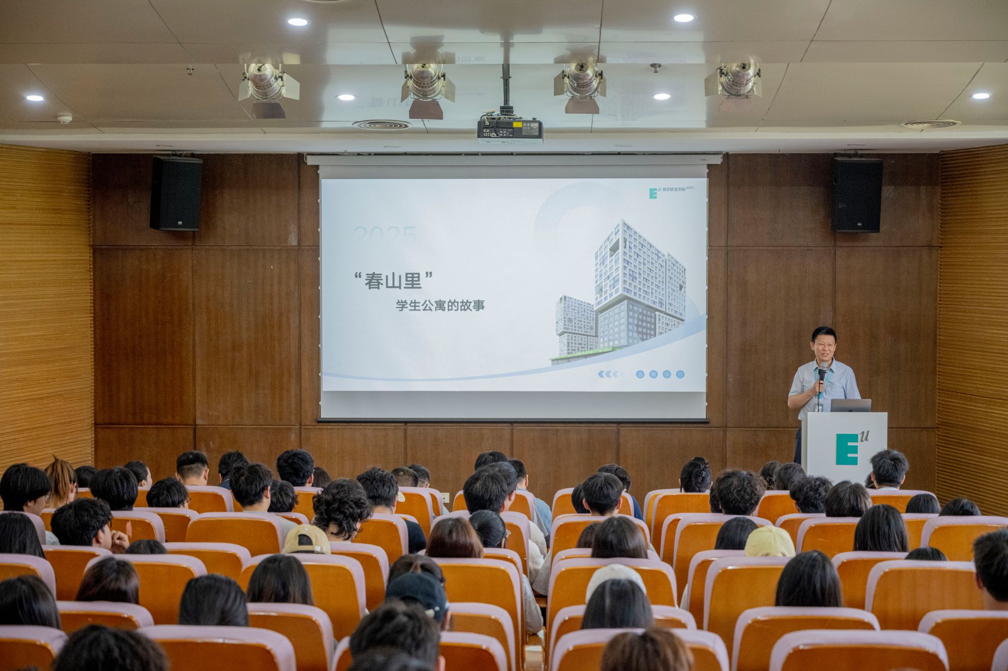 5月28日下午,西安欧亚学院《春山里学生公寓的故事》在图书馆学术报告厅正式拉开帷幕。董事长胡建波教授为学生带来一场建筑美学+商科思维的精彩课程,基建处处长雷春妮老师阐述“春山里”学生公寓的设计理念、内部空间,学生发展处张成老师向同学们介绍本次“春山里”学生公寓预选指南。活动由学生发展处处长董杨老师主持,青年社区辅导员、导生等共计260 余人齐聚,共同开启这场春山里学生公寓的故事。