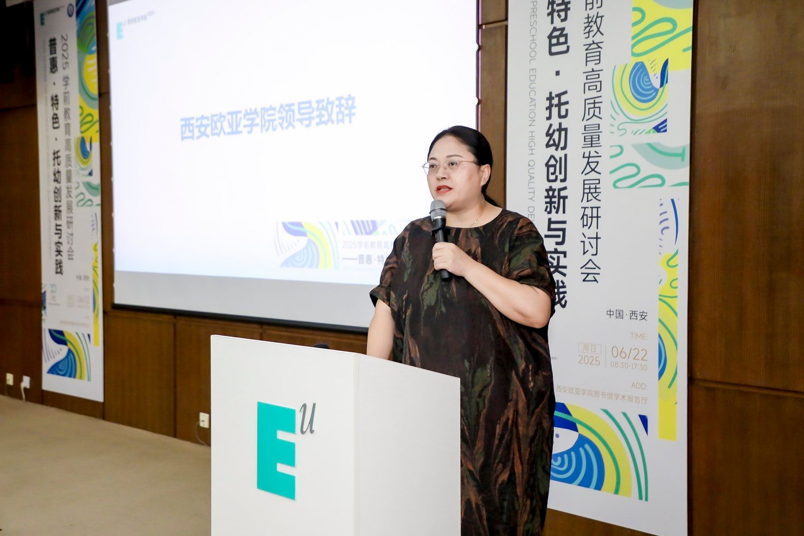 2025年6月22日,人文教育学院以 “2025 学前教育高质量发展 —— 普惠・特色・托幼创新与实践”为主题,在欧亚学院图书馆报告厅奉献了一场高质量的学前教育研讨会。本次研讨会由西安欧亚学院人文教育学院与陕西省儿童心理学会联合主办、在浙江贝玛教育博士后工作站支持下,来自东北师范大学、陕西师范大学、台北教育大学等高校及研究机构的专家和园长,围绕着学前教育法解析、人口变化下幼儿园转型之路、托幼创新等议题进行深入交流。本次研讨会吸引了来自全国各地160余名幼儿园园长、教师以及100多名学前教育专业学生参加。会议期间,代表们还观摩了学前教育学术季艺术展演和模拟建园项目式教学,充分展现了欧亚学院人才培养的质量、特色和创新。