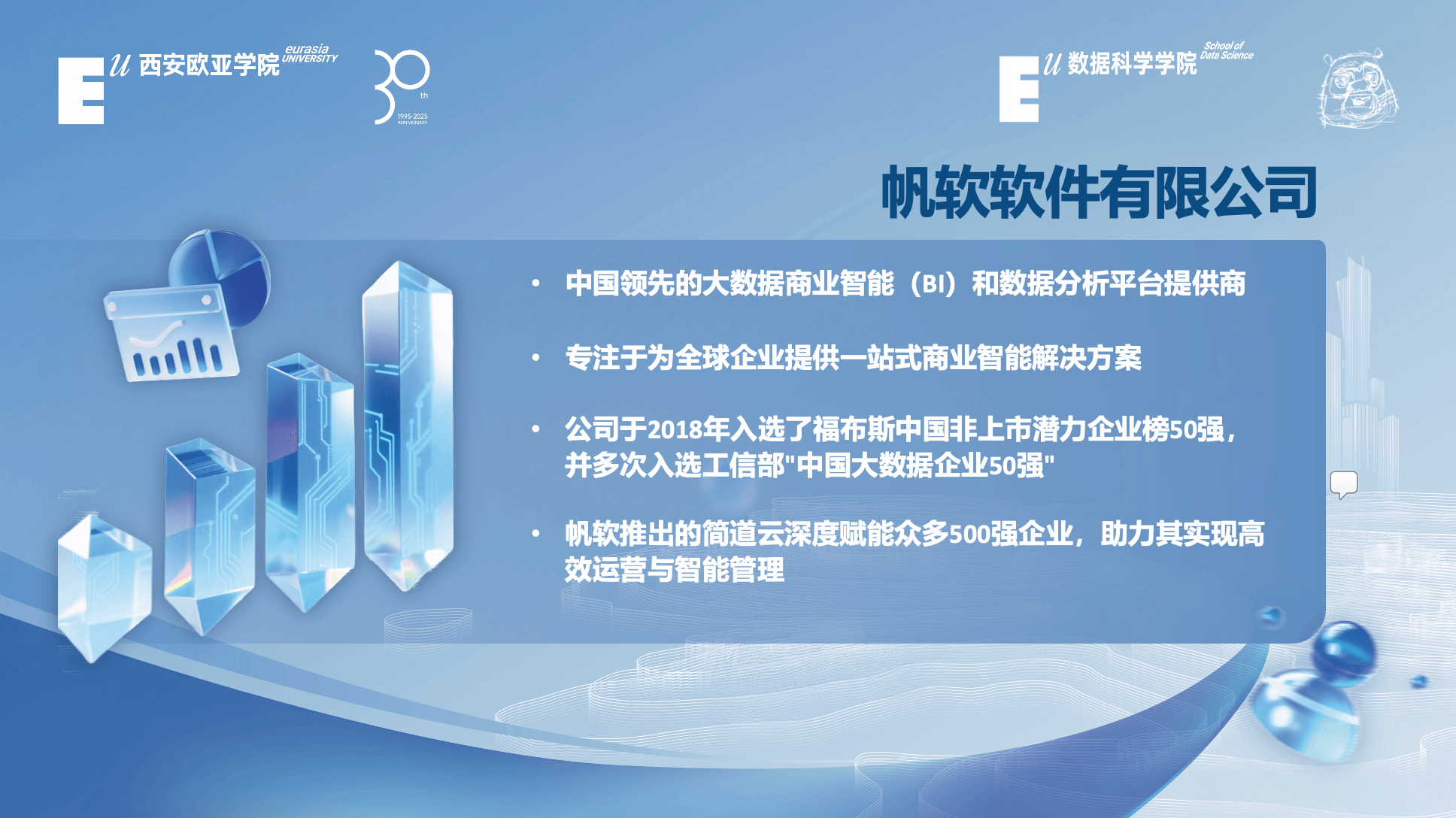 本次论坛深度践行了西安欧亚学院“以企业为导向,以学生为中心”的教育理念,共同探索了数据思维培养、AI技术落地与数据要素估值等前沿话题。同时,论坛活动打破了学界与产业界的壁垒,不仅推动数据思维的激活深化、核心技能的创新实践与跨学科融合,更以数据+业务深度融合,强化校企协同,实现高校人才培养体系与企业真实业务场景同频共振,为数据科学领域高等教育与企业价值的转化结合提供了生动的实践范本。