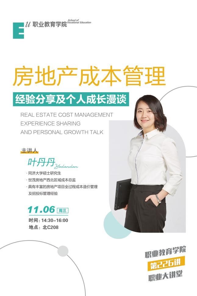 2024年9月25日,西安欧亚学院职业教育学院房产服务系举办了第226期职业大讲堂,特邀世茂房地产西北区成本负责人叶丹丹,为学生开展了一场题为“房地产成本管理经验分享及个人成长漫谈”的讲座。叶丹丹毕业于同济大学,硕士研究生,深耕房地产行业近10年,有丰富的房地产项目全过程成本造价管理及招投标管理经验。本次职业大讲堂通过剖析房地产成本项目案例,为学生解读地产成本行业故事,并从个人角度带来职场小白到职场精英的成长之路分享。