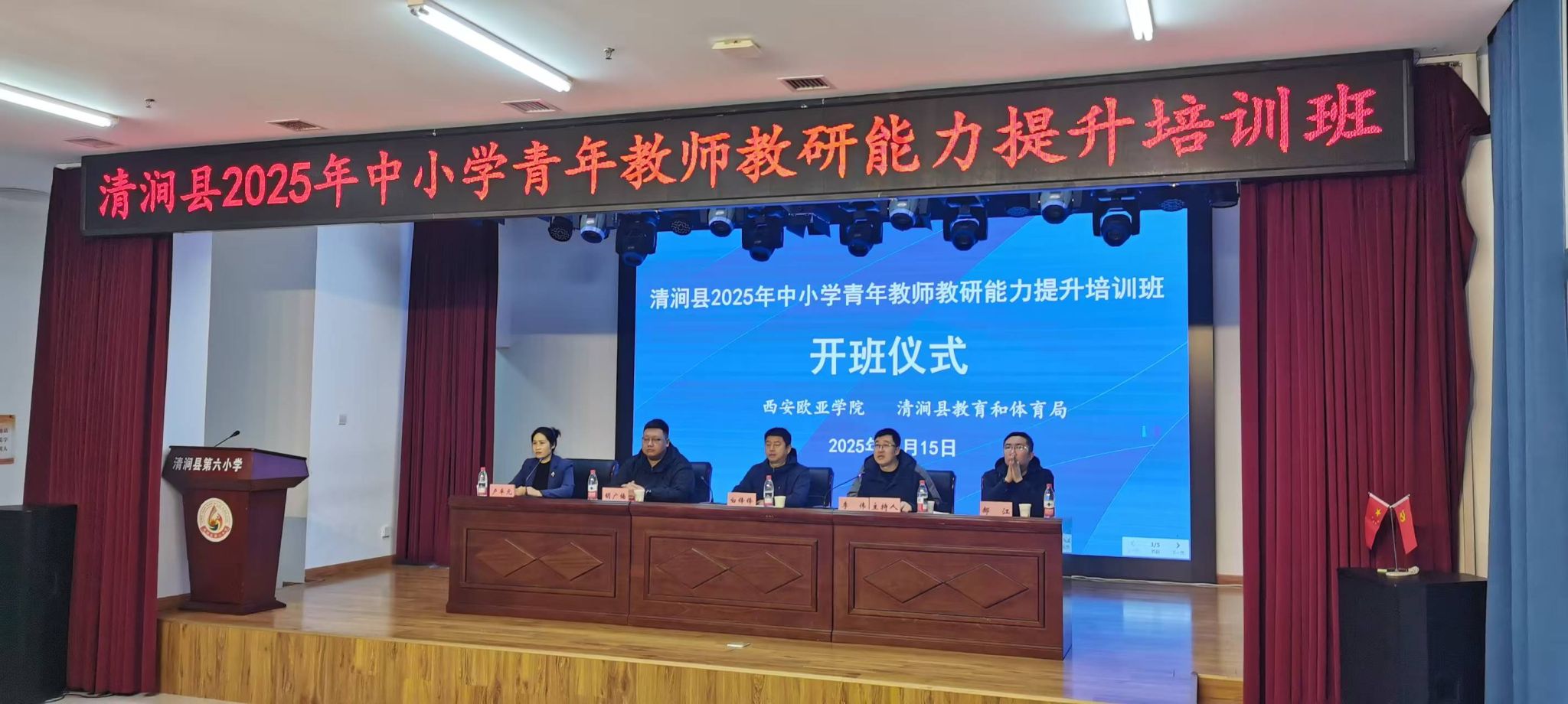 为深入落实教育结对帮扶工作,助力清涧县中小学青年教师专业能力与教研水平的全面提升, 11月15日,由我校通识教育学院与清涧县教育和体育局联合开展的 “清涧县2025年中小学青年教师教研能力提升培训” 在清涧县顺利举行,我校通识教育学院12名实战教师组成的教学团队对清涧县54名青年教师进行了系统培训。本次培训聚焦团队建设、学科核心素养提升、课件制作、结构化教学表达、数学跨学科设计及批判性思维培养等六大主题,内容系统、方法多元,为青年教师提供了高质量的专业成长支持。