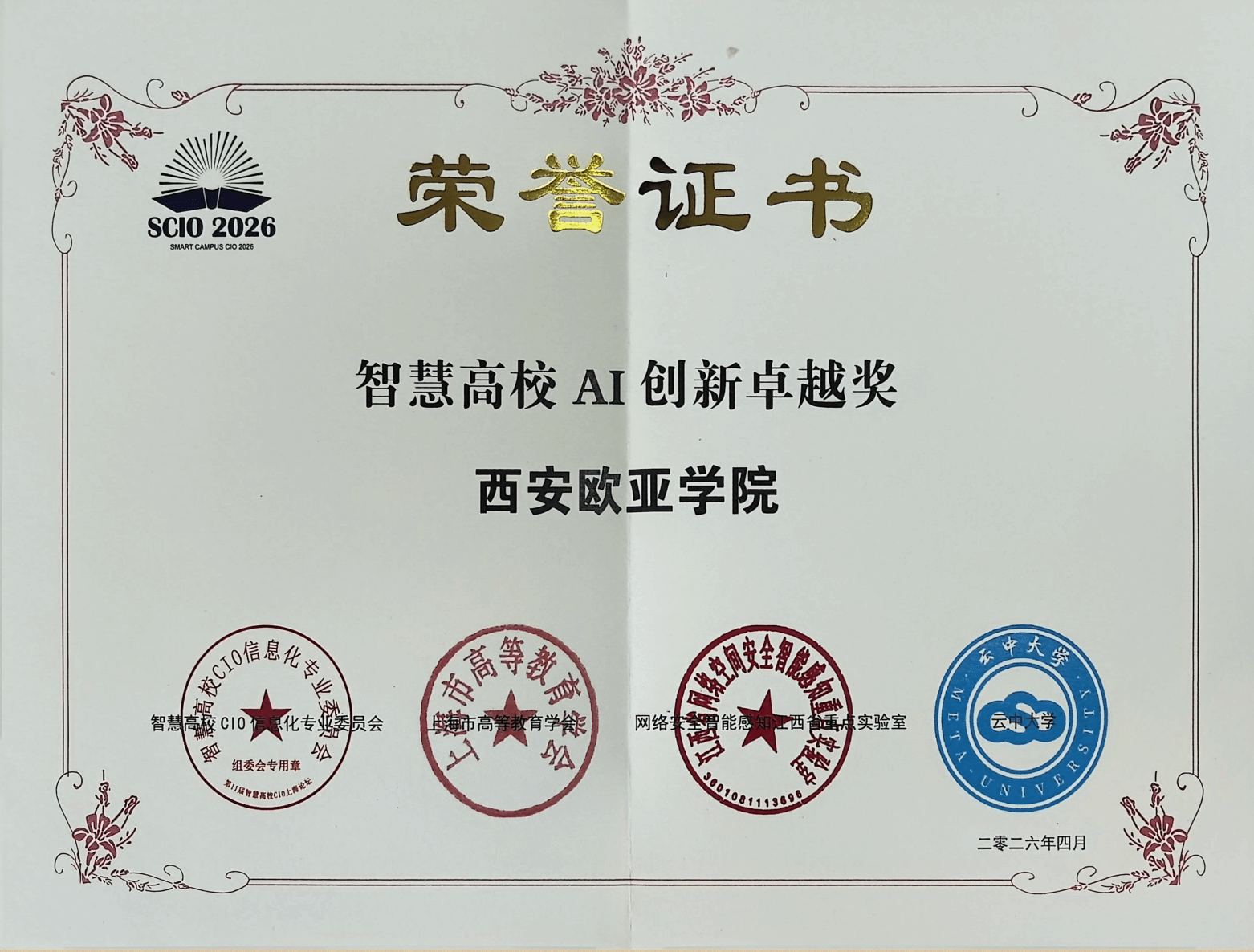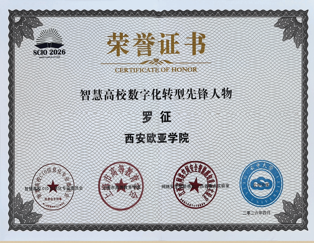 4月10日,第十一届智慧高校CIO上海论坛隆重举行,本次会议主题为“AI引领,智启高等教育新征程”。我校数字化研究院院长、图文信息中心主任罗征受邀参会并作专题报告。凭借在智慧校园及AI教育创新领域的突出成果,我校荣获“智慧高校AI创新卓越奖”,罗征获评“智慧高校数字化转型先锋人物”。两项荣誉充分体现了业界对我校数字化建设的高度认可。