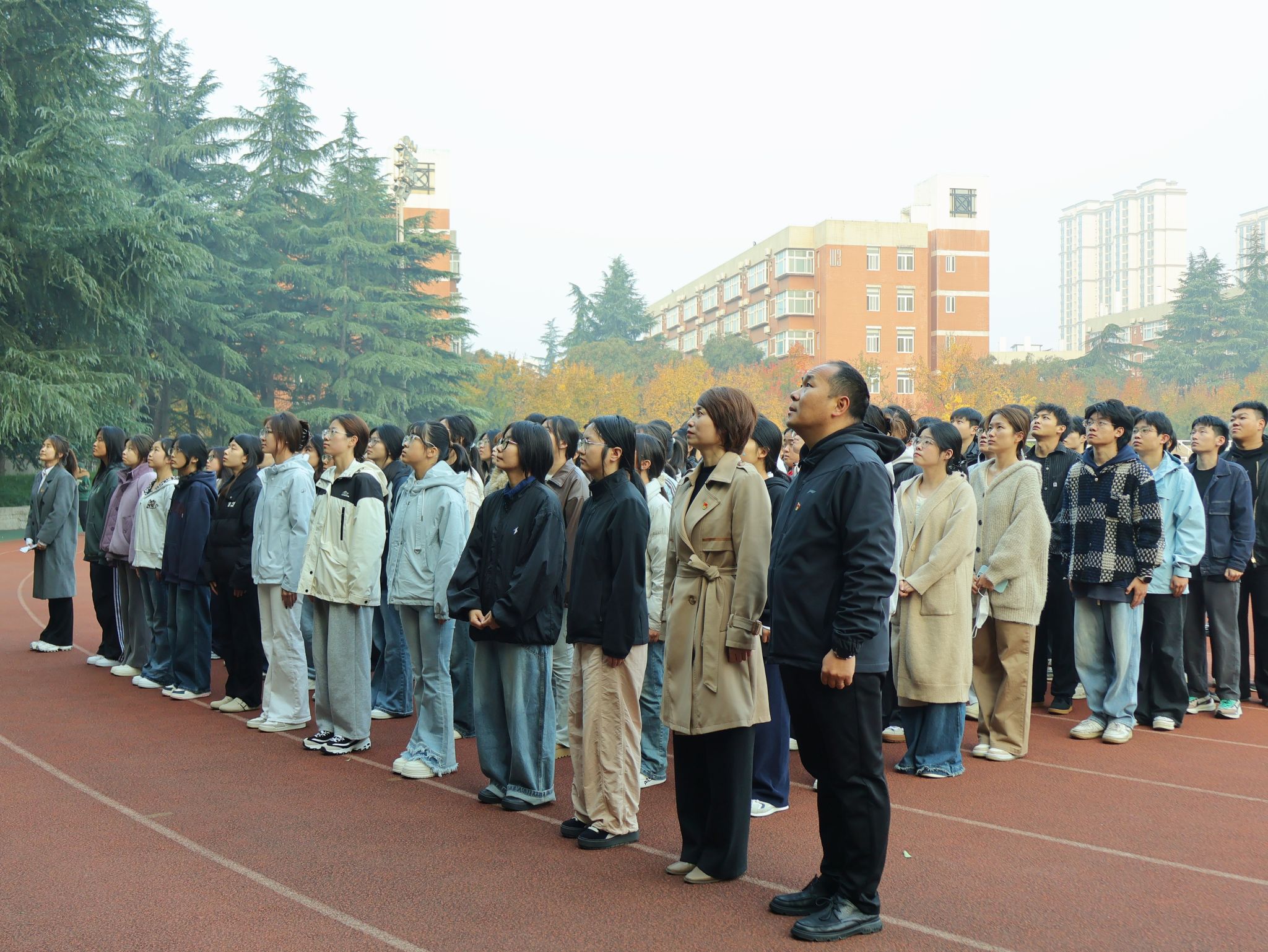 当晨光渐渐洒落,国歌的激昂旋律在操场响起,全体师生肃立注目,五星红旗迎着微风,于晨光中缓缓舒展、冉冉升起。那抹鲜艳的中国红,映照着一张张坚定的面庞,将家国情怀与青春信念,牢牢镌刻在每个人心中。