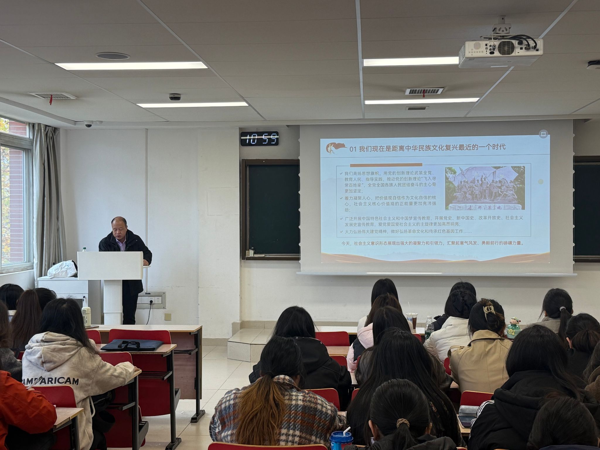 随后,张庚老师聚焦“如何以文化自信推动中华民族伟大复兴”这一核心问题,提出具体实践方向。他强调,党员及发展对象要主动学习中华优秀传统文化,传承红色革命精神,同时立足当下创新文化表达形式;要将文化自信融入日常工作与思想建设,坚决抵制文化虚无主义,以实际行动践行中国特色社会主义文化道路,为民族复兴凝聚思想共识与行动合力。