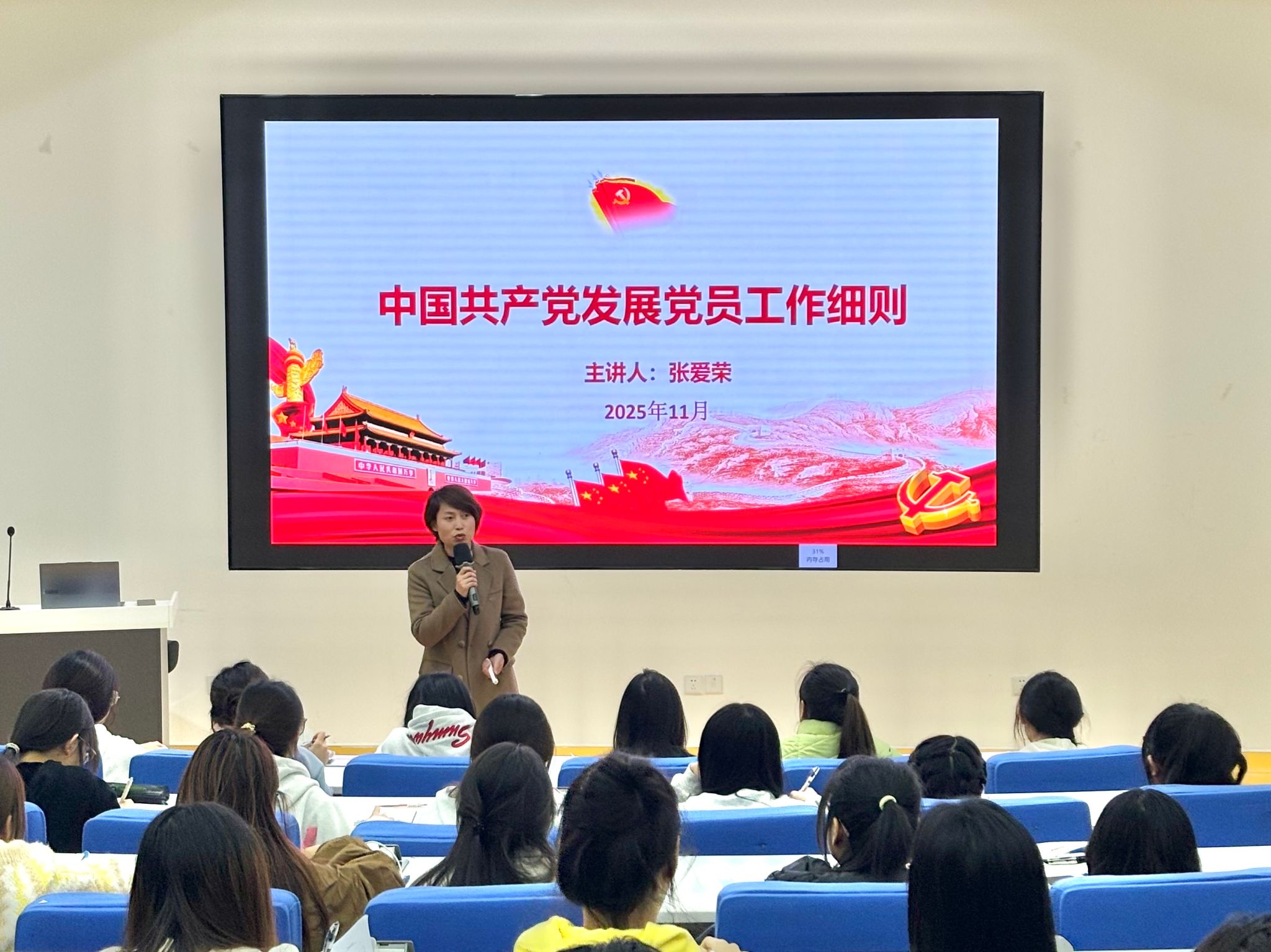 培训伊始,张爱荣老师首先强调了学习《细则》的重要性。她指出,《细则》是党员发展工作的根本遵循,熟悉并掌握其内容,是每一位积极向党组织靠拢的同志的基本要求。清晰了解发展流程,不仅有助于大家明确自身定位和努力方向,更是确保党员发展质量、维护党的先进性和纯洁性的关键环节。
