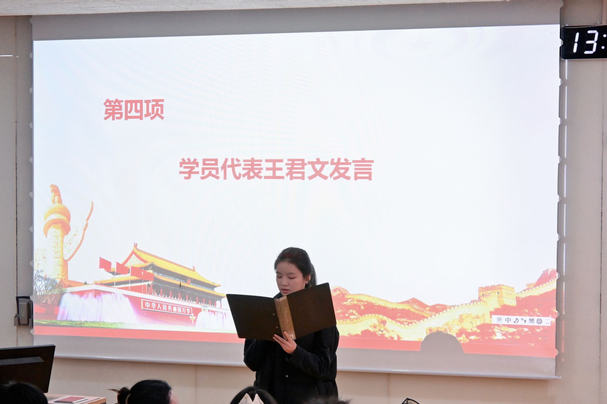 开班典礼在庄严的《中华人民共和国国歌》中拉开帷幕,全体师生肃立,齐声高唱国歌。随后,分党委副书记黎舒婷首先宣读了培训管理办法,强调全体学员要充分认识培训的重要意义,严格遵守学习纪律,以高度的政治自觉和饱满的学习热情完成培训任务,在思想和行动上进一步向党组织靠拢,以"从组织上入党一生一次,从思想上入党一生一世"的态度认真完成学习任务。