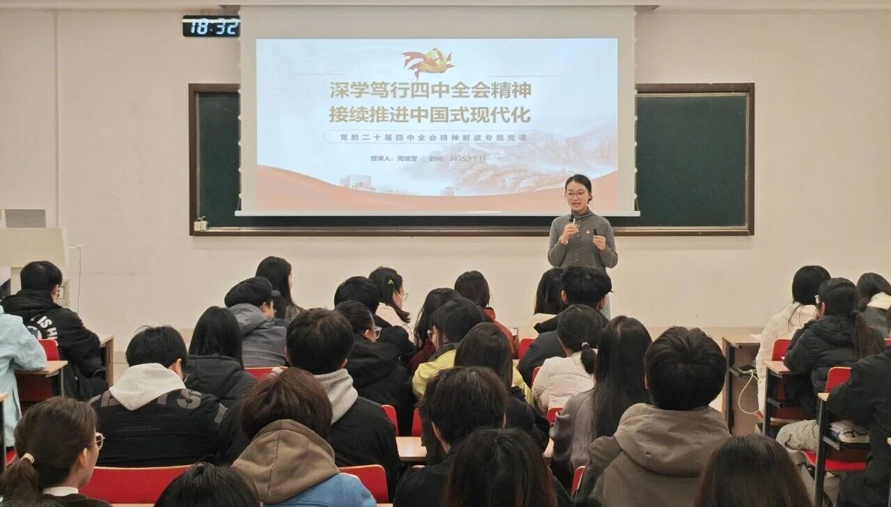 马克思主义学院的周瑞莹老师为学员们带来了《深学笃行党的二十届四中全会精神,接续推进中国式现代化》的专题辅导。周老师深入浅出地阐述了党的二十届四中全会的重大决策部署、理论创新成果及其时代价值,重点讲解了以中国式现代化全面推进中华民族伟大复兴的宏伟蓝图与实践路径,激励学员们要不断加强理论武装,增强历史主动,将个人奋斗融入国家发展大局。