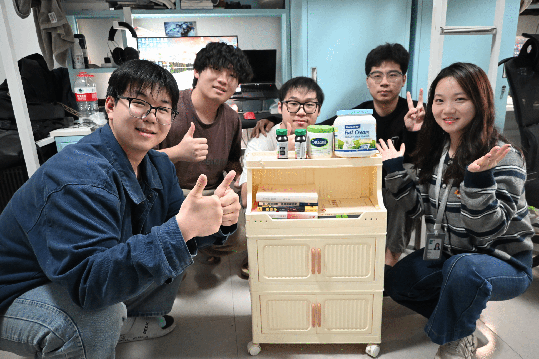组装现场,师生分工配合、默契协作,拆封板材、核对配件、拼接框架,每一个步骤都认真细致;交流互动间,老师还结合组装过程分享宿舍收纳整理技巧,引导同学们养成整洁有序的生活习惯。随着一件件配件逐步拼接成型,崭新的收纳柜稳稳立在宿舍角落,同学们一同将杂乱物品分类归置,原本拥挤的宿舍角落瞬间变得整洁敞亮,居住体验得到切实提升。