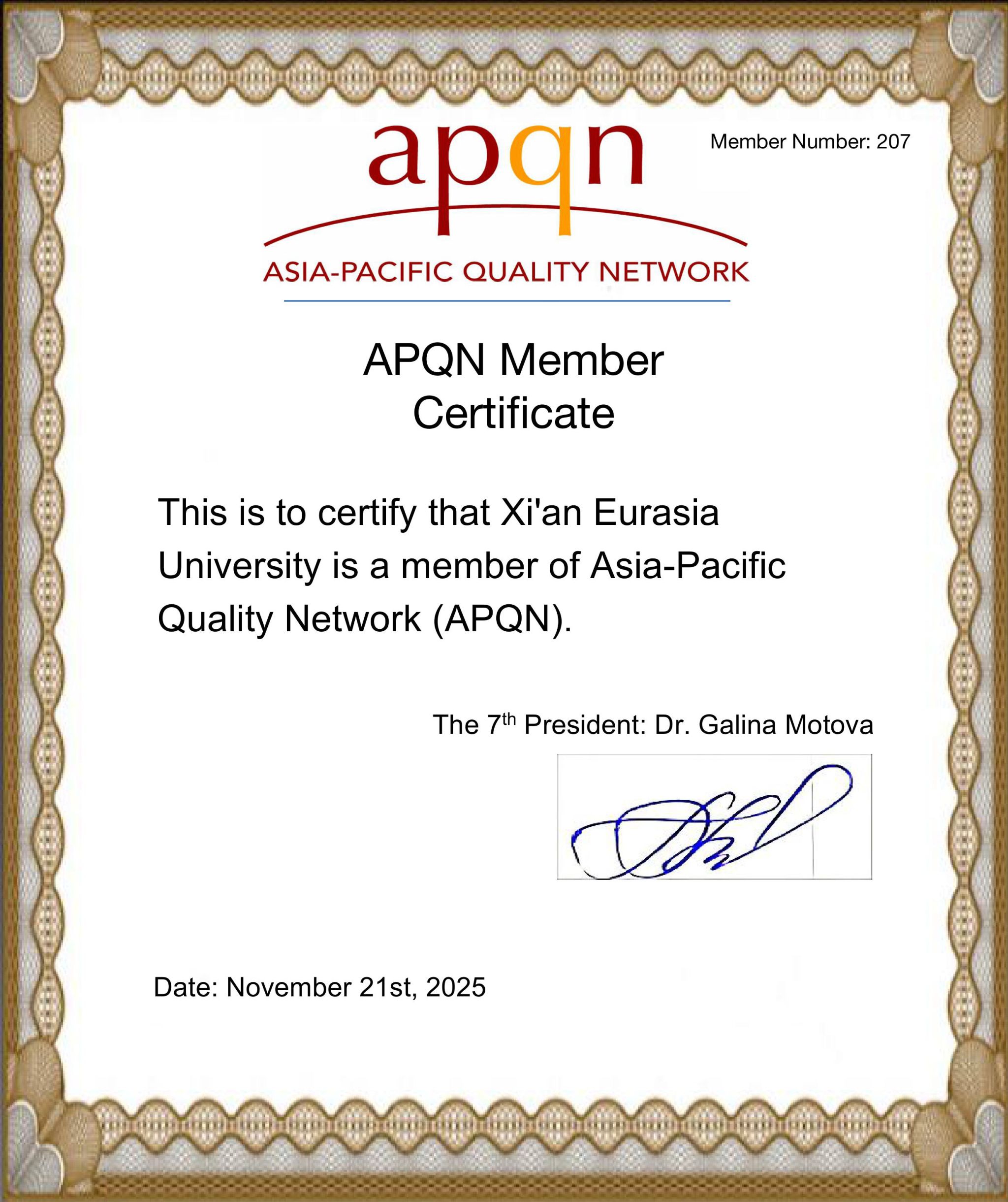 11月21日,西安欧亚学院通过亚太地区教育质量保障组织(Asia-Pacific Quality Network, 简称“APQN”)审核、评估、论证等程序,经APQN董事会批准,正式成为APQN组织成员。