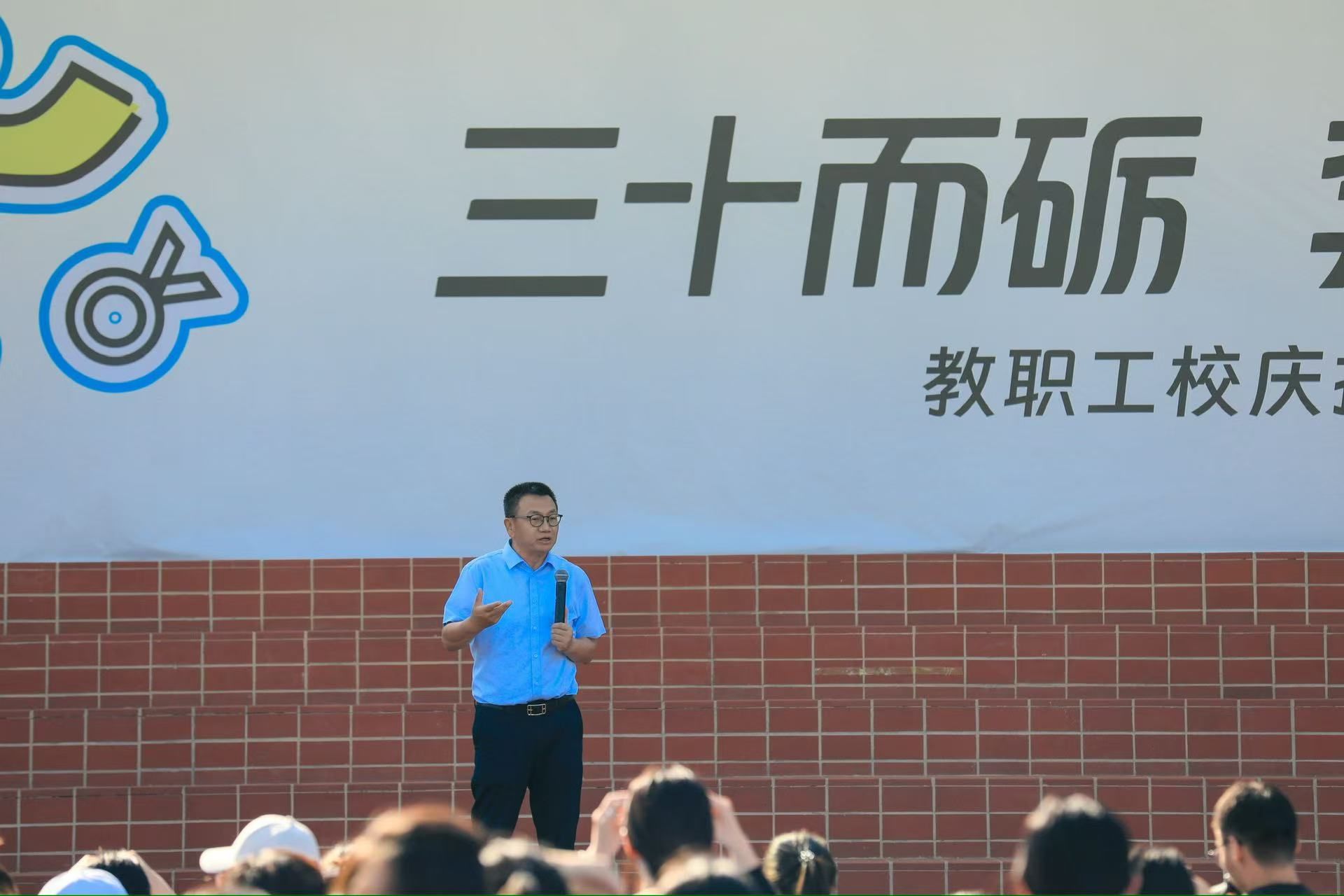 西安欧亚学院董事长胡建波教授发表致辞,在欧亚学院建校30年之际,春山里公寓和和光文体中心相继建成并投入使用,彰显出西安欧亚学院对于学校育人环境和师生身心健康的重视。同时,他勉励全校教职工在阳光下挥洒汗水、挑战自我,在享受运动快乐的同时,领略欧亚校园之美,增添爱校敬业之情,用实际行动向学生传递锻炼身体的重要性。
