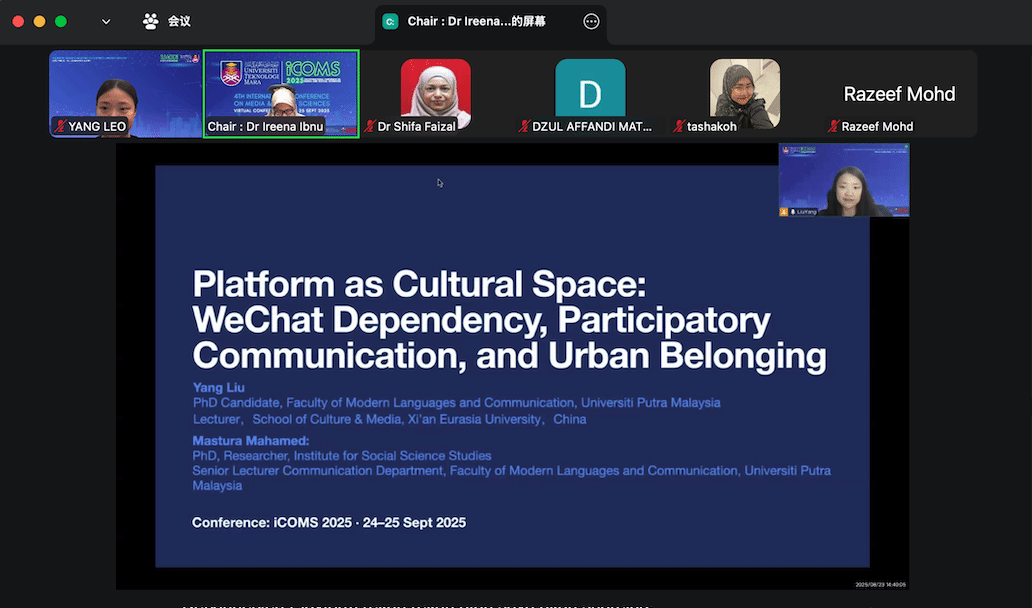2025年9月24日至25日,由马来西亚玛拉工艺大学(UiTM)传播与媒体学院主办的第四届国际传媒与社会科学大会(iCOMS 2025)隆重举行。大会以“Shaping the Future of Global Communication: Trends, Technologies, and Transformations”为主题,汇聚来自多国的学者与研究者,围绕传播、社会与数字技术的最新趋势展开交流与探讨。