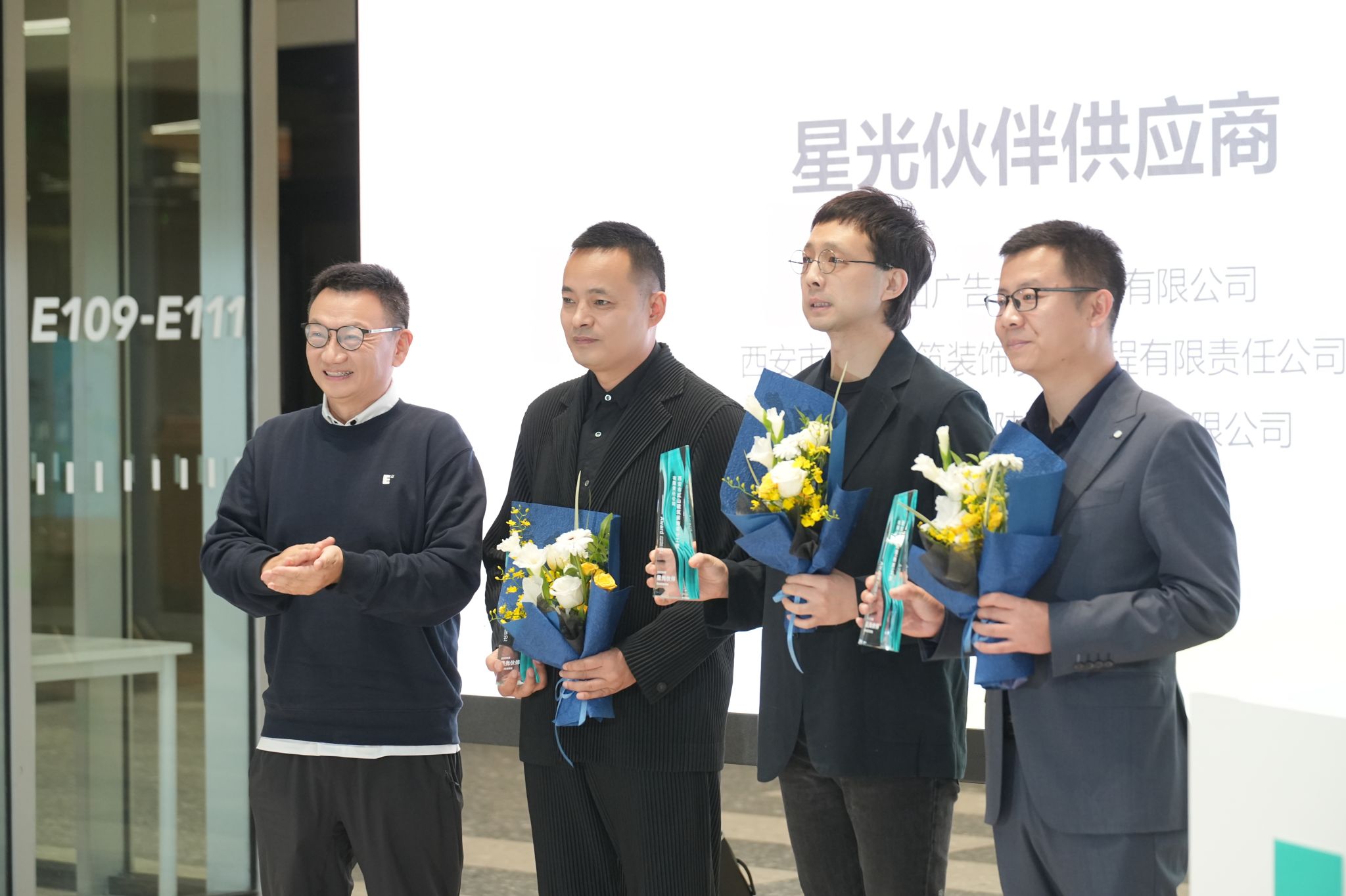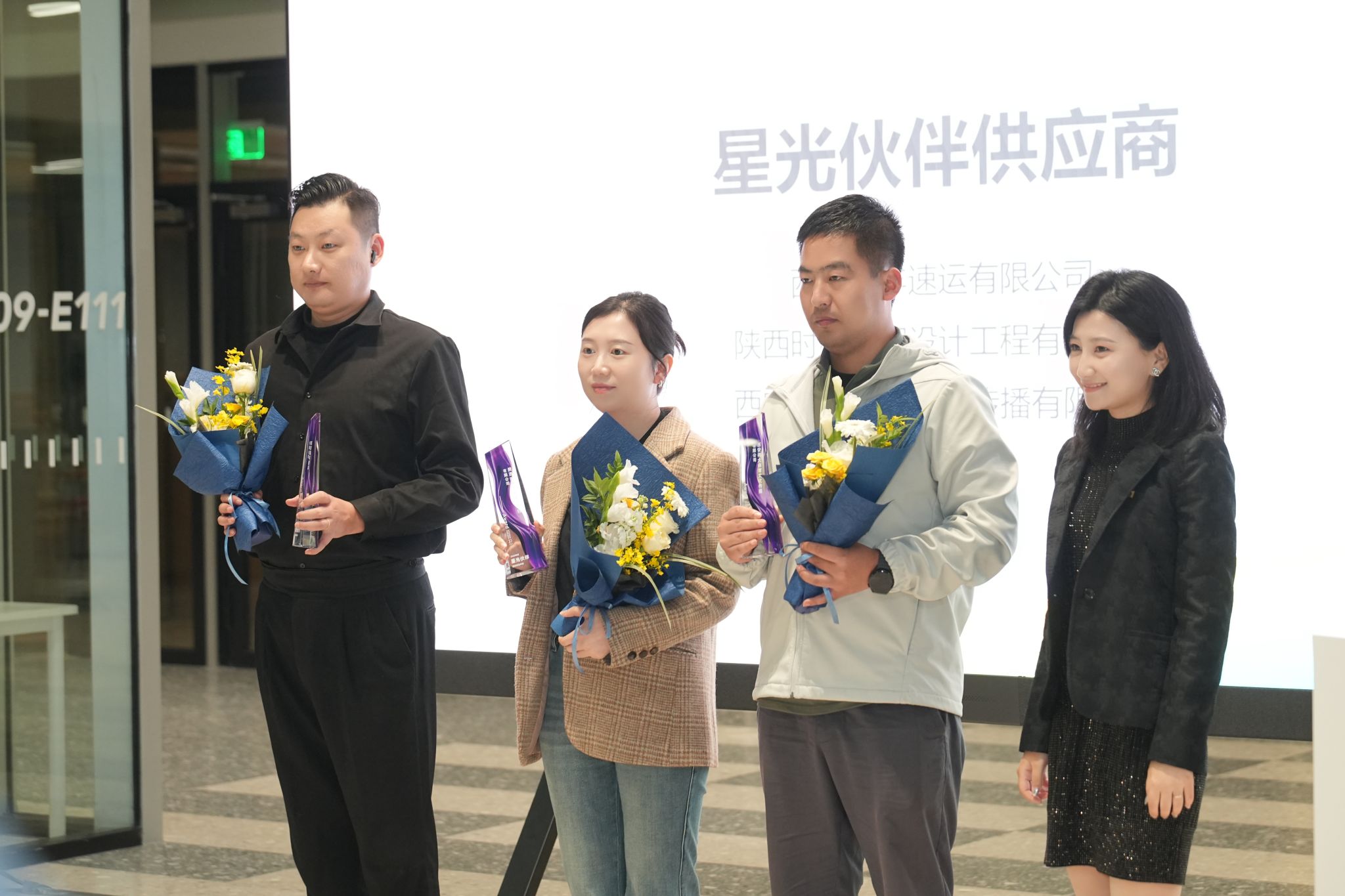年会特别设置2025年星光伙伴奖。西安见山广告文化传播有限公司、西安市红山建筑装饰设计工程有限责任公司、新东方沃凯德(陕西)文旅有限公司、苏州金螳螂建筑装饰股份有限公司、诺梵(上海)系统科技股份有限公司、河北英利奥体育用品有限公司、西安顺丰速运有限公司、陕西时楷空间设计工程有限公司、西安得大体育文化传播有限公司等九家单位,凭借其服务质量、产学合作中的优异表现获此殊荣。