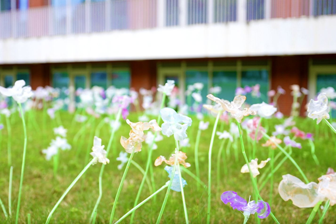 3000支感光热缩片花朵随紫外线照射变色,从透明至炫彩,隐喻生命在时光中的个性绽放,体现因材施教的理念实践。