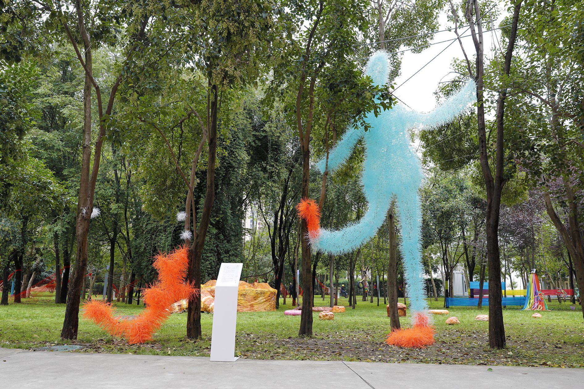 用石膏绷带在树干间塑造出生动的手势形态,以极具亲和力的方式打破人与自然之间的隔阂,让艺术成为连接彼此的温暖媒介。
