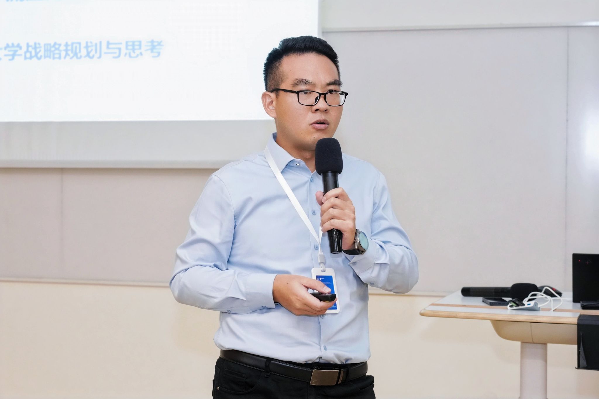 西安欧亚学院创办人、董事长胡建波教授对上半场报告内容进行评议。他指出,高校应跳出统一评价束缚,重构发展逻辑。他提出高校规划应从理念、内容、形式与合法性四方面系统建构,实现从“被动适应”向“主动定义”转变。