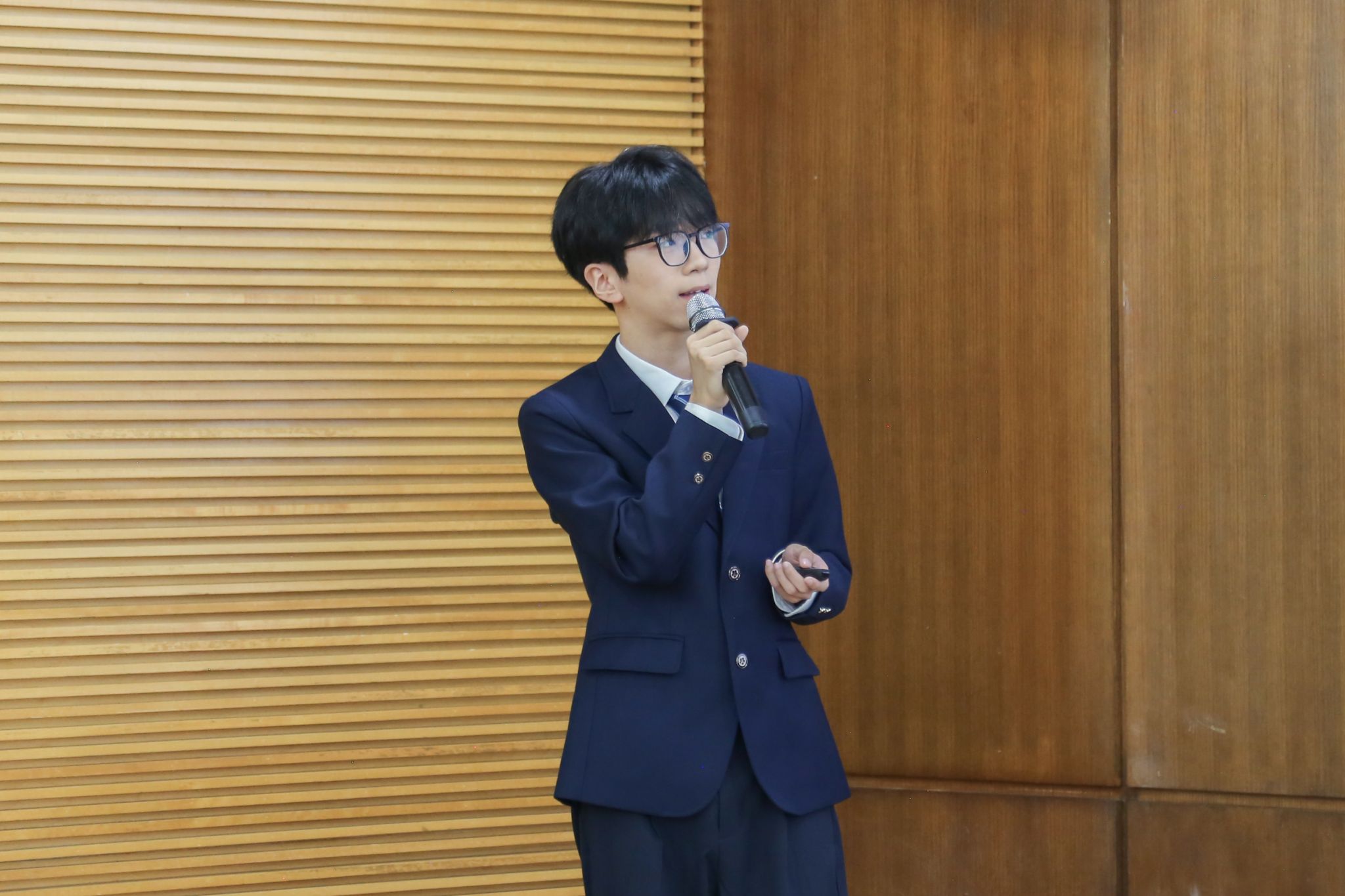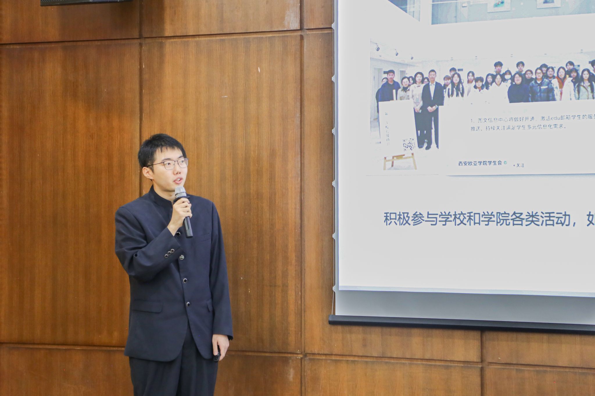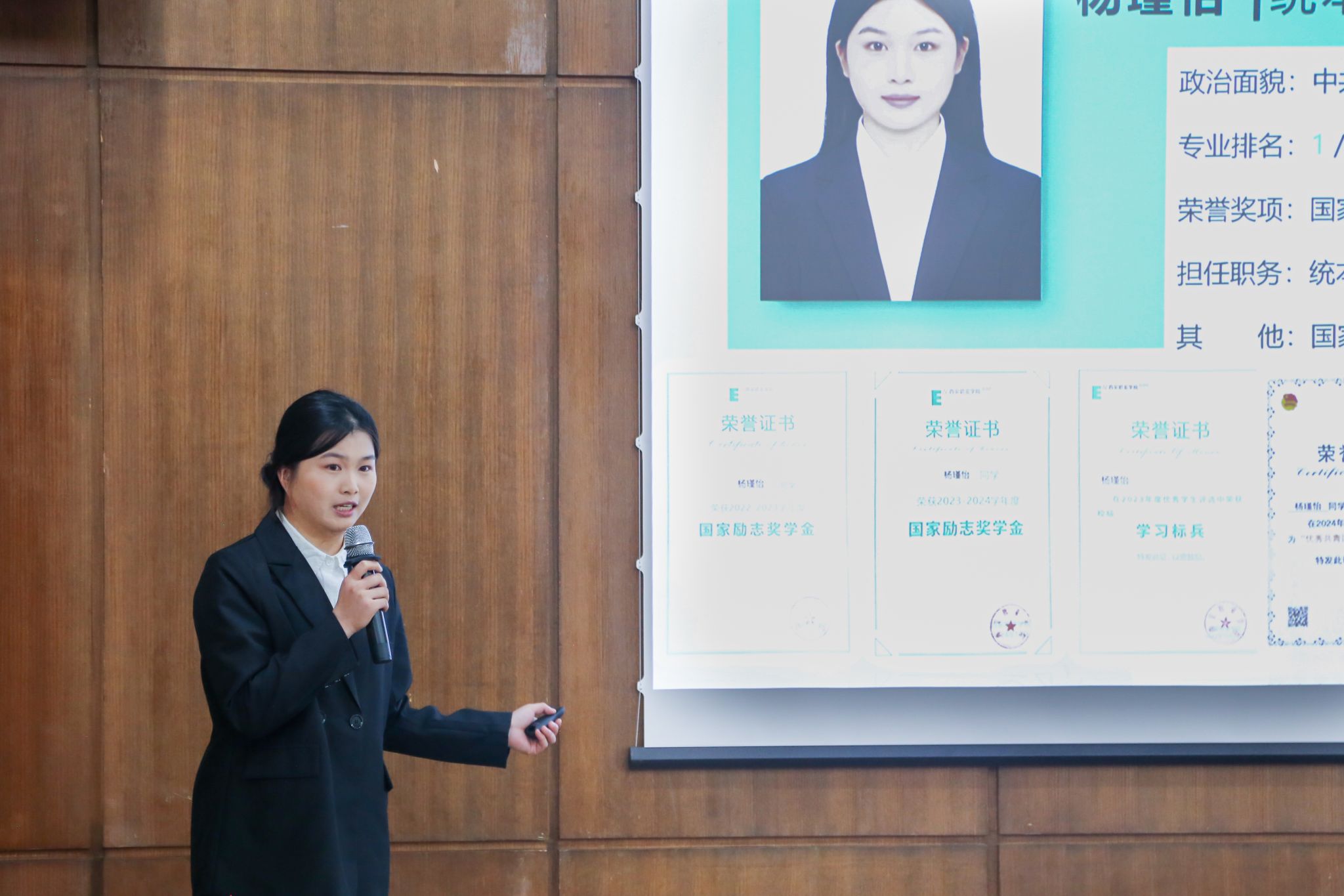 活动伊始,国家奖学金评审委员会副主任、学生发展处处长董杨老师为风采展致辞。他指出,国家奖学金是国家授予高校学生的崇高荣誉,其评审不仅关注学业成绩,更是对候选人综合素质、创新精神与实践能力的全面考量。教育的使命在于“唤醒”与“赋能”,而非简单的“塑造”。他勉励全体同学要从榜样的事迹中汲取力量,明确自身发展方向,“认同脚下的路、认同同行的人、认同内心的声音”,在我校打造的国际化、应用型、新体验的育人质量内涵中,勇敢追寻属于自己的光芒,成为“重品格、会思考、善沟通”的全面发展人才。