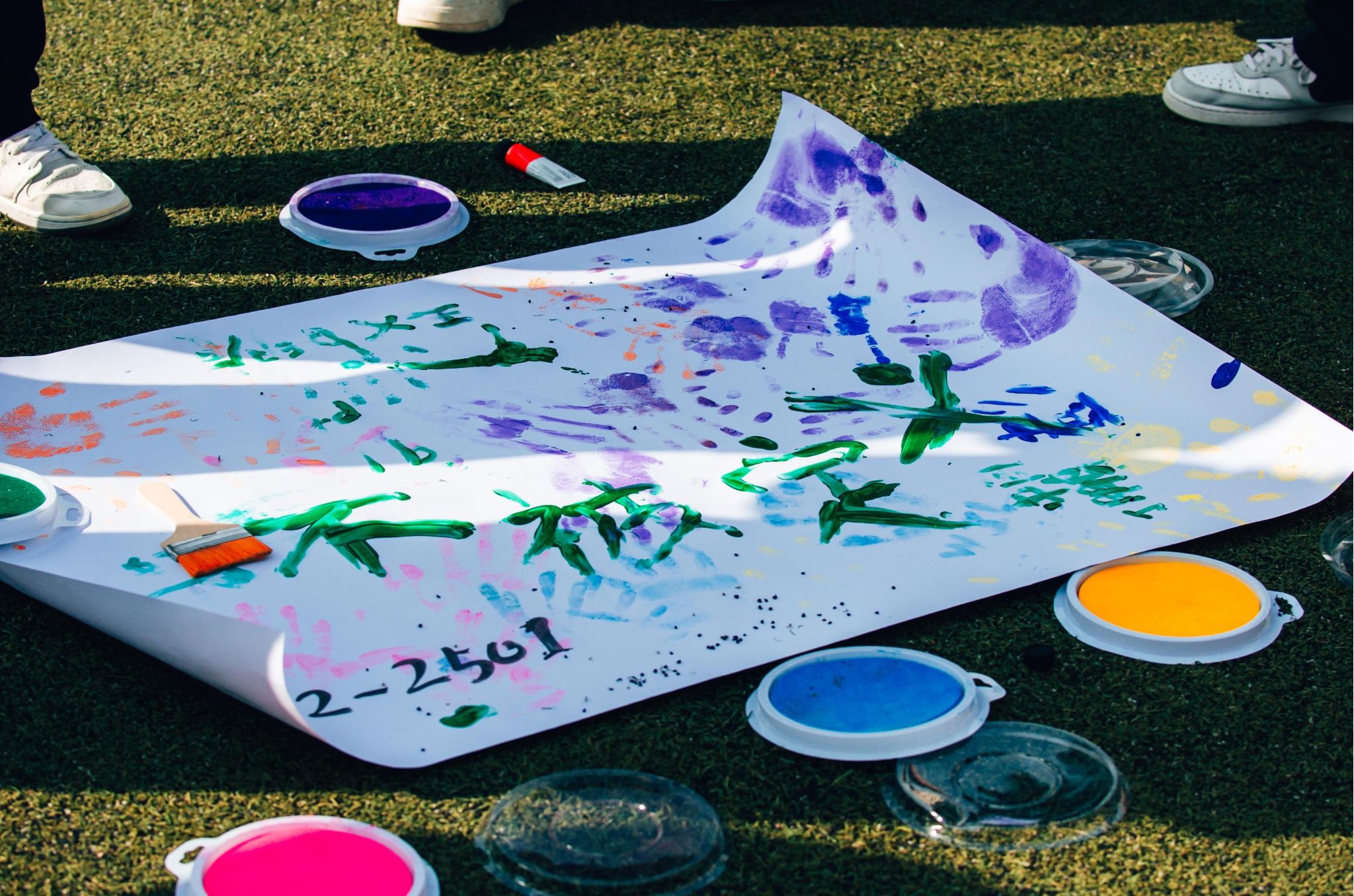 在第三项活动中,各支部的共创画卷铺展开来,同学们用手掌蘸取颜料,将掌纹印在画卷上,并为作品命名。五彩缤纷的画面,各不相同的手掌,汇聚成了本次活动最珍贵的纪念品。这场共创,定格了集体向心力,成为同学们大学生活里。